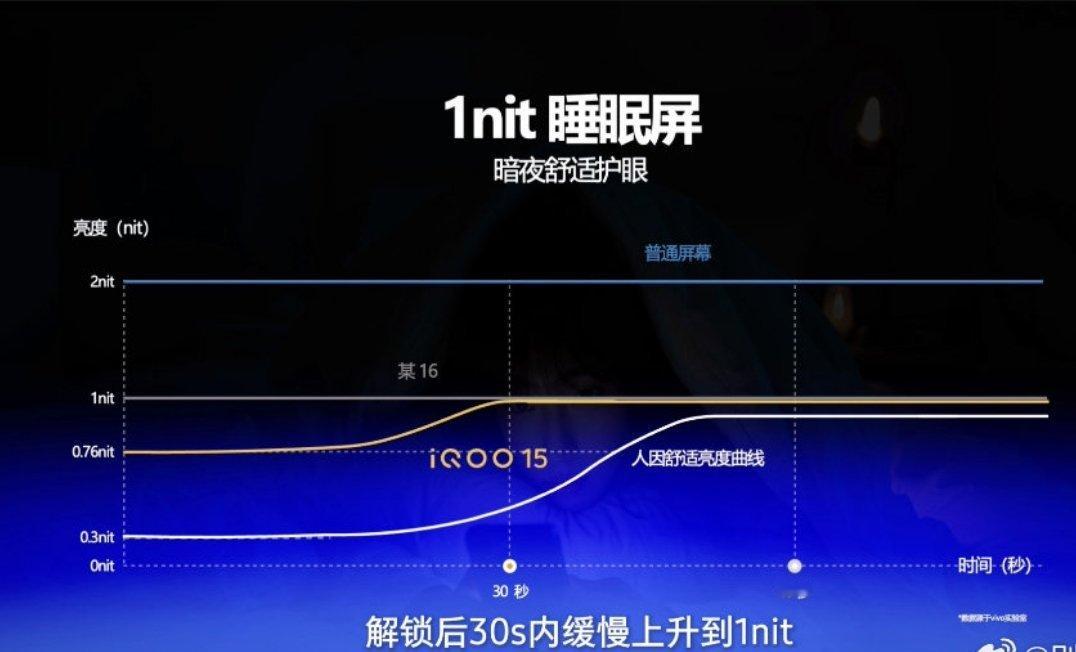 作为今年护眼调光的新赛道,1nit暗夜护眼多款新机都提到了,iQOO15自然也不