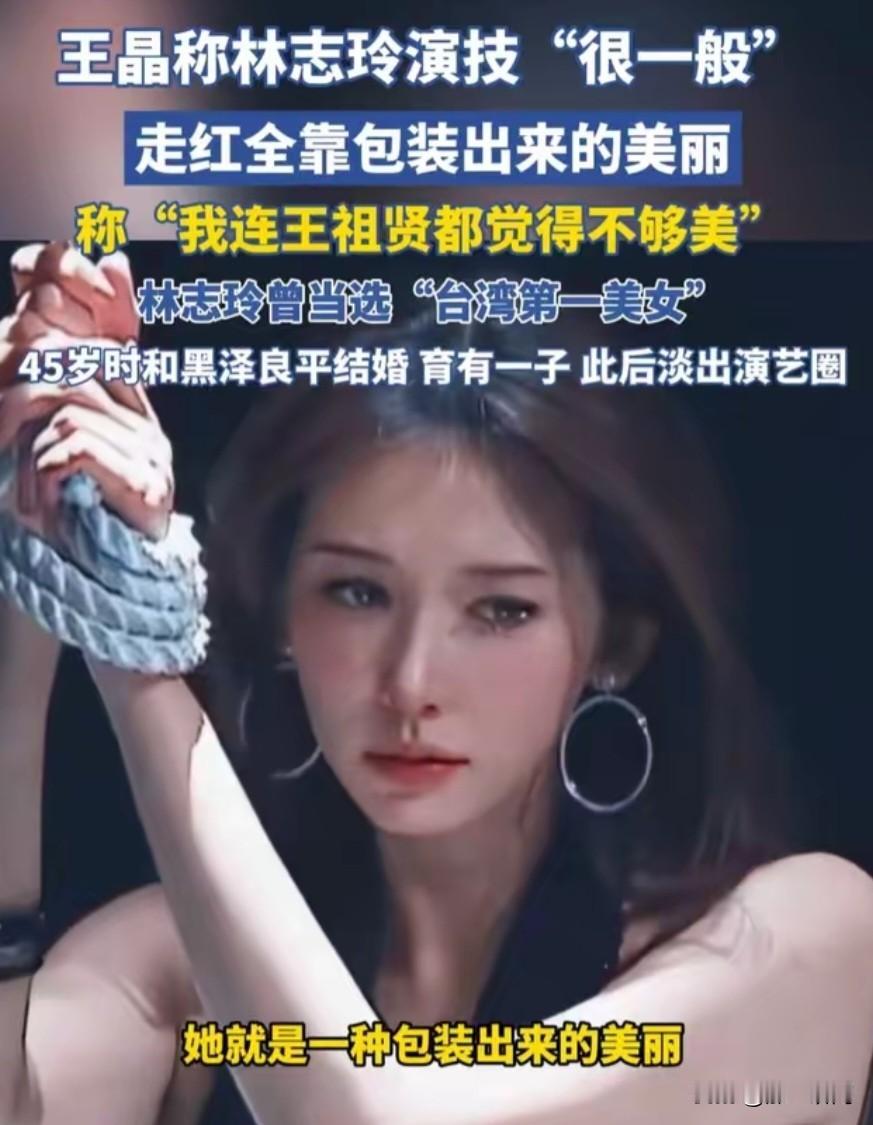 还是王晶敢说啊,林志玲曾当选“台湾第一美女”但是王晶说她是包装出来的美丽。 王晶:演技很一般咯,她就是一种包装出来的美丽,我连王祖贤我都觉得不够美,怎么会觉得她美呢。 有网友评价:别人说的你可以不信,但是王晶讲的你得信。 王晶说的话虽然没有那么中听,但是没毛病,眼光犀利;内行人,接触的人太多了。 她给人的印象大多数是个高,身材好,声音嗲。 大家怎么看呢?