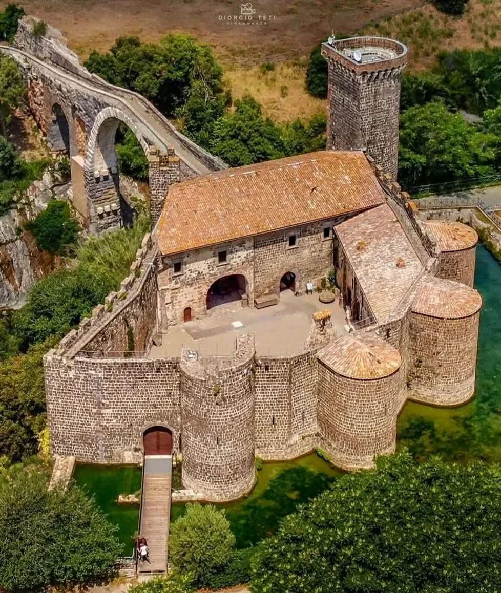 1000年前的意大利古城堡:易守难攻,躲进小楼成一统!这张图片展示的是意大利拉齐奥大区的武尔奇城堡。这是一座建于11至12世纪时期的防御性城堡,最初由当地贵族家族建造,用于控制连接托斯卡纳和拉齐奥的重要通道。城堡所在地曾是伊特鲁里亚文明的重要城市——武尔奇(Vulci),这座古城在公元前8世纪至公元前3世纪间极为繁荣,是伊特鲁里亚文化、艺术和商业的重要中心。在中世纪时期,这一地区因地势险要再度成为战略要地。 从图片中可以看出,城堡由粗犷的火山岩石砌成,外墙厚重坚固,呈现典型的中世纪军事防御风格。右上角高耸的主塔是瞭望与防御的核心位置,顶部的垛口用于射击与观察。正面三座圆形塔楼形成坚固的防御体系,能抵御攻城武器的冲击。入口处设有吊桥,桥下仍可见绿水环绕的护城河遗迹,象征着古代防御系统的完整性。内部庭院宽敞,铺有石板,是城堡居民日常活动的中心,主厅则曾用于接待与议事。城堡后方可见一座壮观的中世纪石桥,横跨 Fiora 河峡谷,是意大利最令人叹为观止的古代工程之一。这座拱桥连接了城堡与古武尔奇考古区,传说因其建筑之精妙而被认为是“魔鬼所建”。