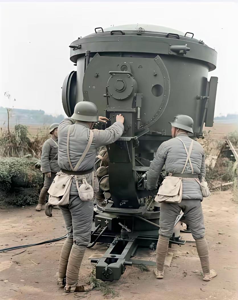 猜猜这是啥装备? 提示:这是抗日战争期间中国军队架设某装备的情形。这种装备是用于特定用途的,现在早已淘汰。 人民解放军直到70年代,还有个别部队有此类型装备。 图片应该是后期着了色的,原始图片是黑白的。