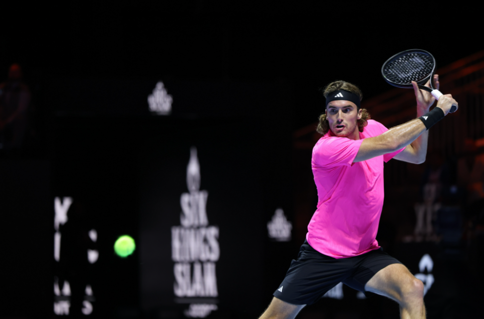 在沙特阿拉伯利雅得举行的“六王大满贯”网球表演赛首日比赛中,意大利选手辛纳2比0战胜希腊选手西西帕斯,晋级半决赛。