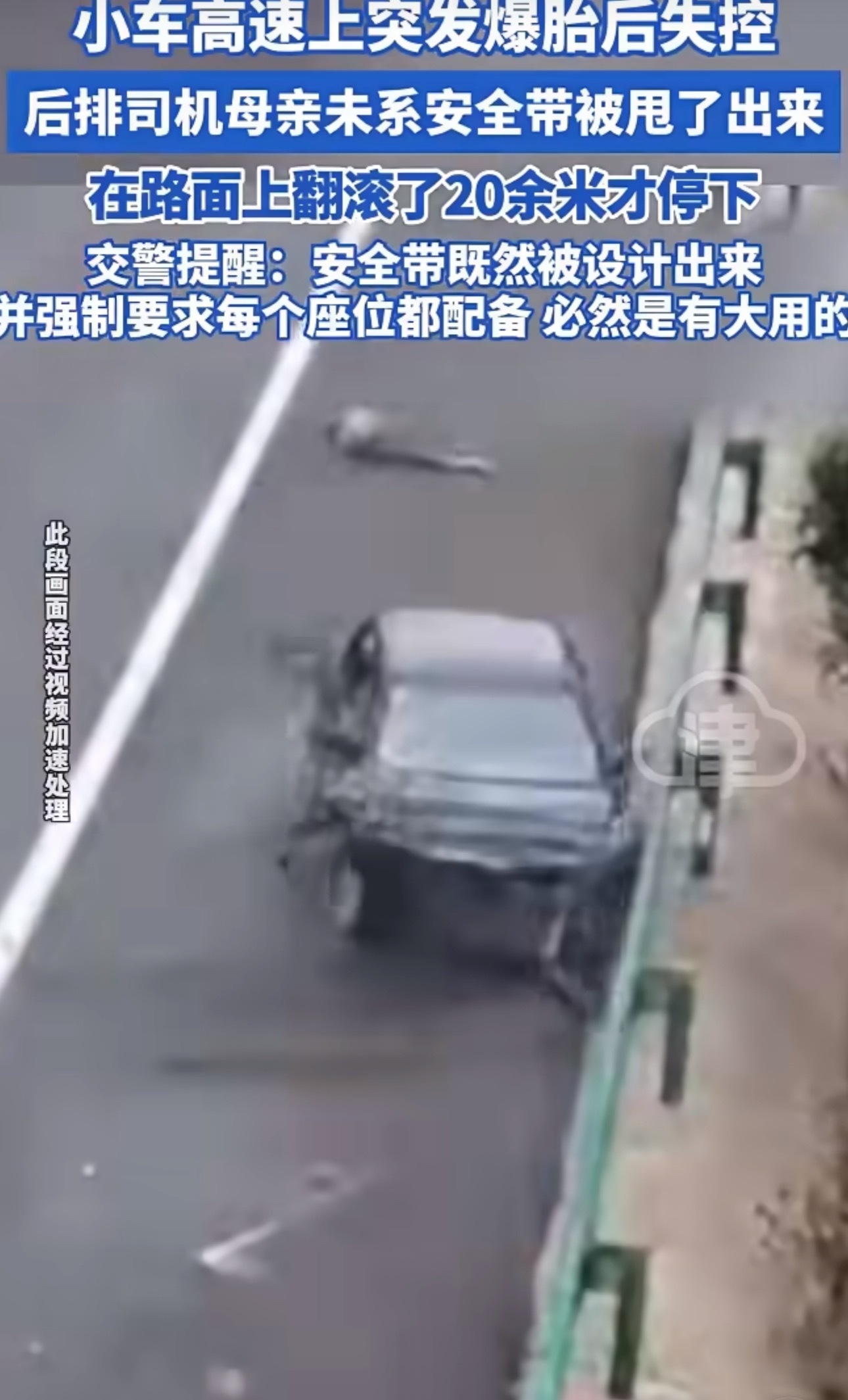 小车突然爆胎后排女子被甩出车窗安全无小事,大家坐后排也一定要系好安全带,不要觉得麻烦就不系了,关键时刻真能救命的。