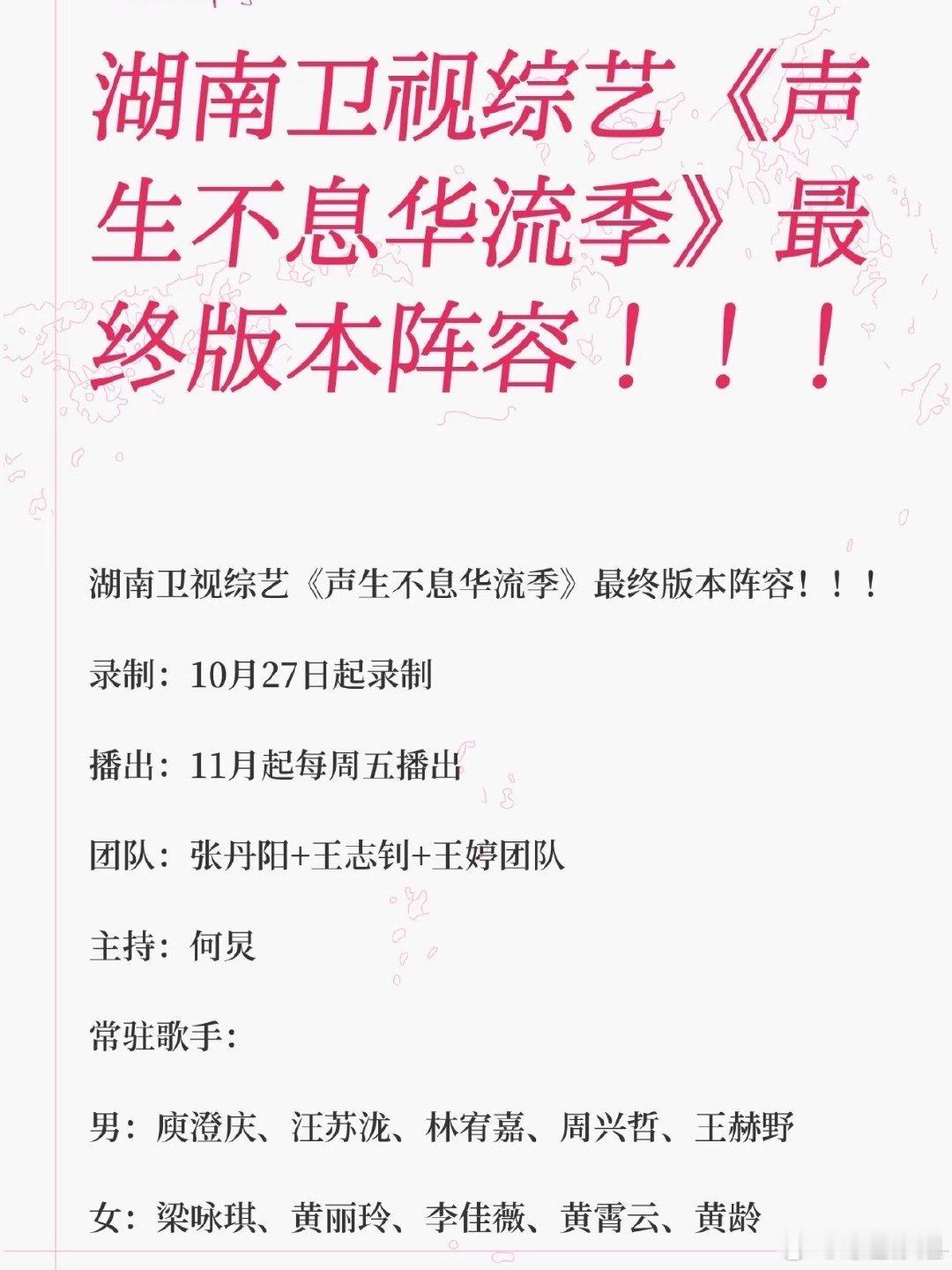 网传《声生不息·华流季》最终阵容: