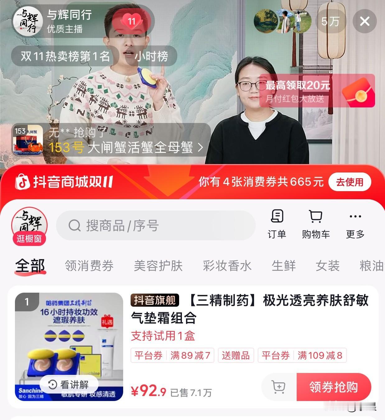 今天中午上了一批三精的护肤品 董董说在男生脸上试一下气垫更直观 他还没在闯子脸上比划完,就又售罄了[笑哭] 可以看出来对比挺明显的 董董着重强调了一下 这款气垫涂上不会像戴了个面具 而是保持了皮肤的呼吸感 调整肤色 整个人看上去更自然 这不就是女生们一直追求的裸妆感嘛 价格还这么便宜 怪不得卖这么好呢 看闯子的脸都变嫩了 他对打了粉底的自己非常满意[大笑]