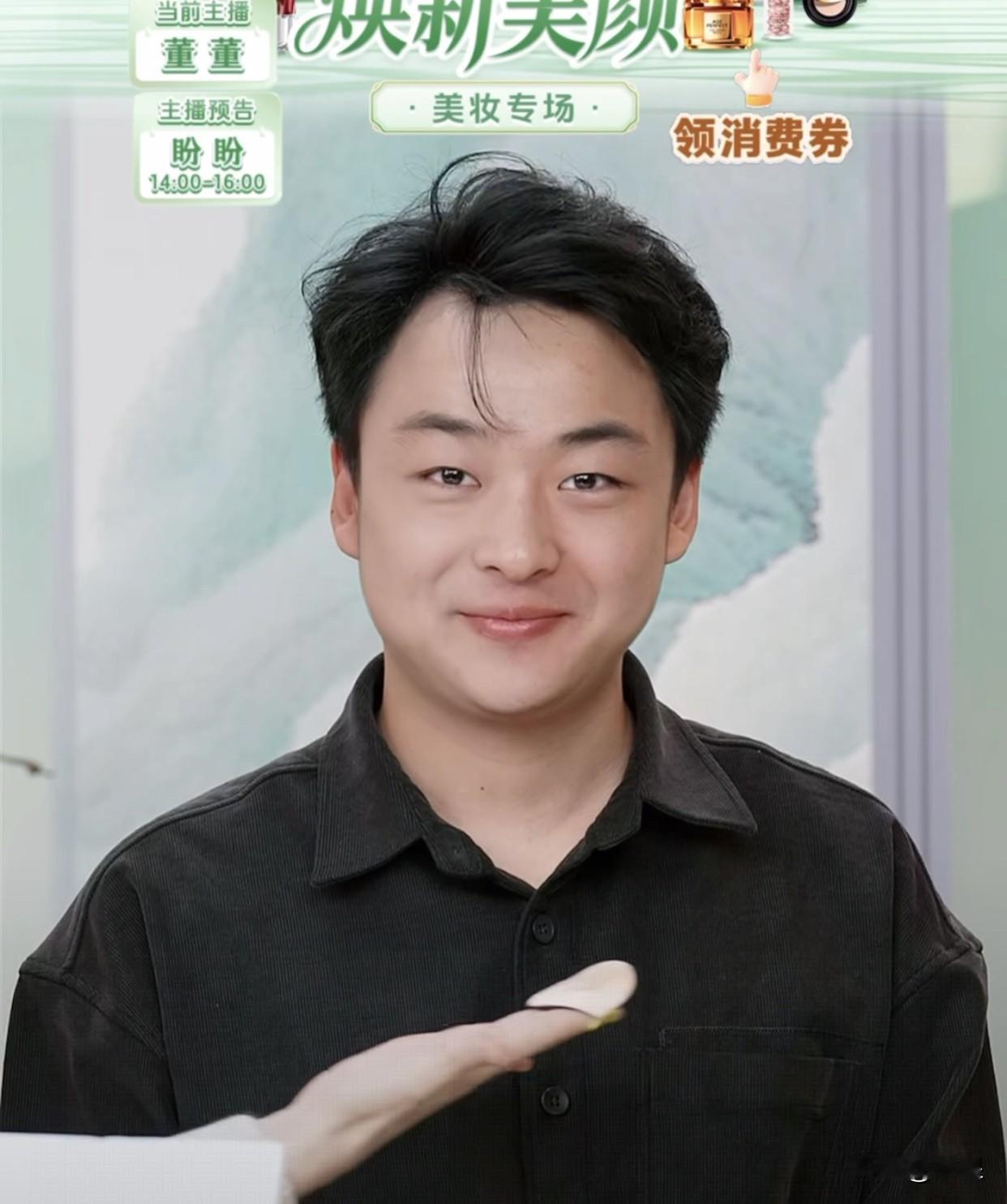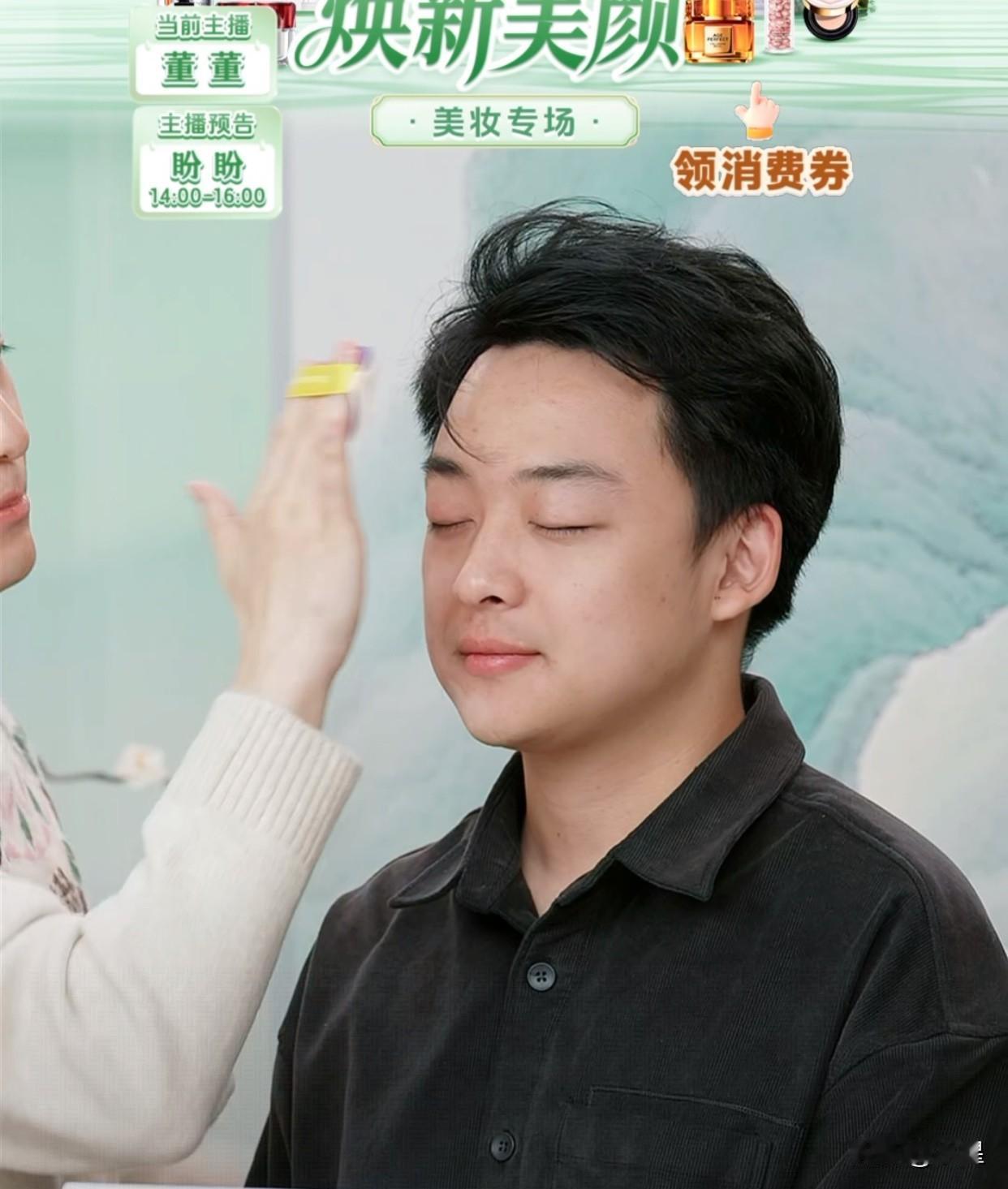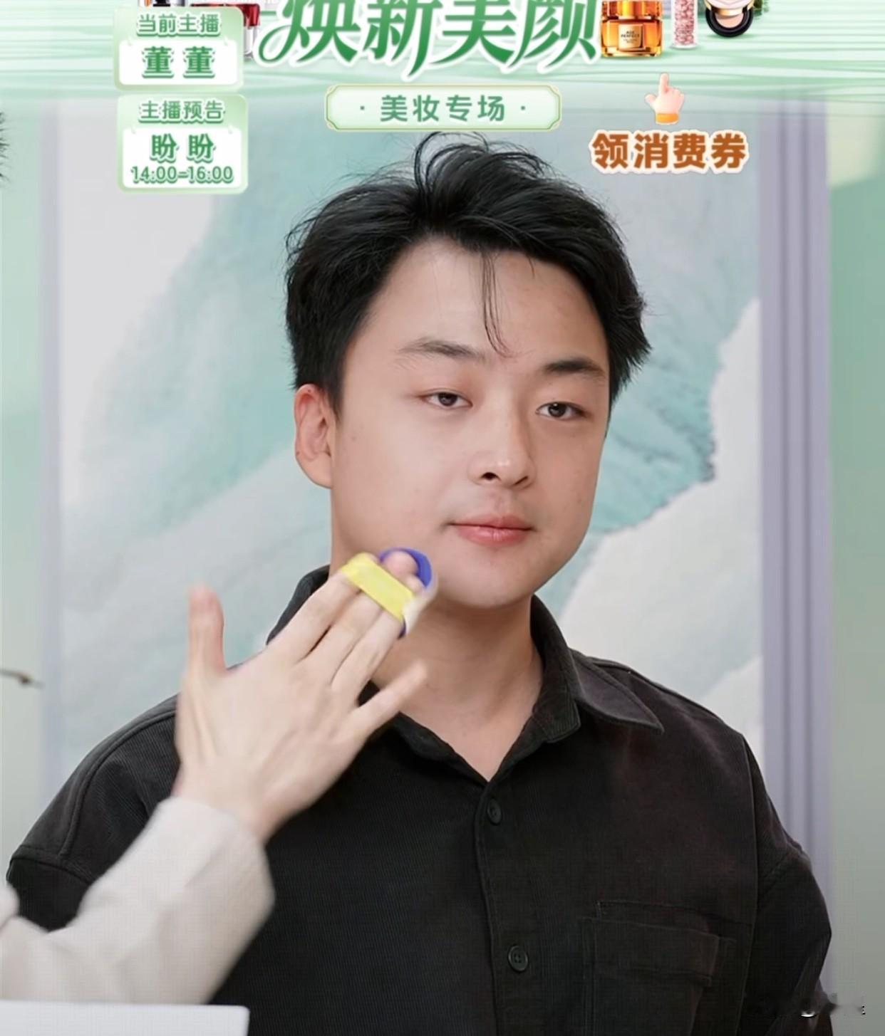 今天中午上了一批三精的护肤品 董董说在男生脸上试一下气垫更直观 他还没在闯子脸上