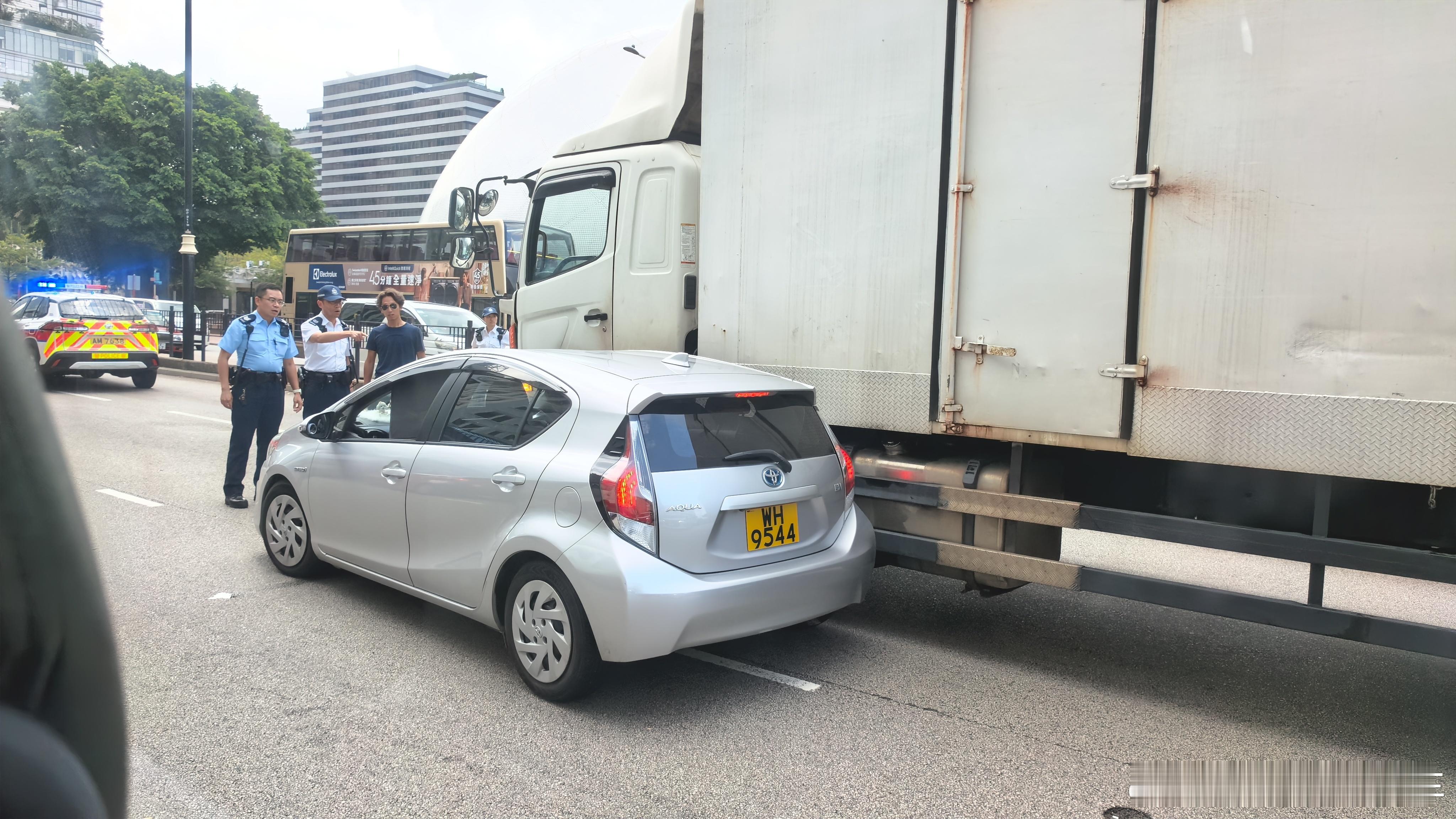 一到香港就碰到了交通意外,一个小碰撞来了三位警察,还有一辆宝马警车。