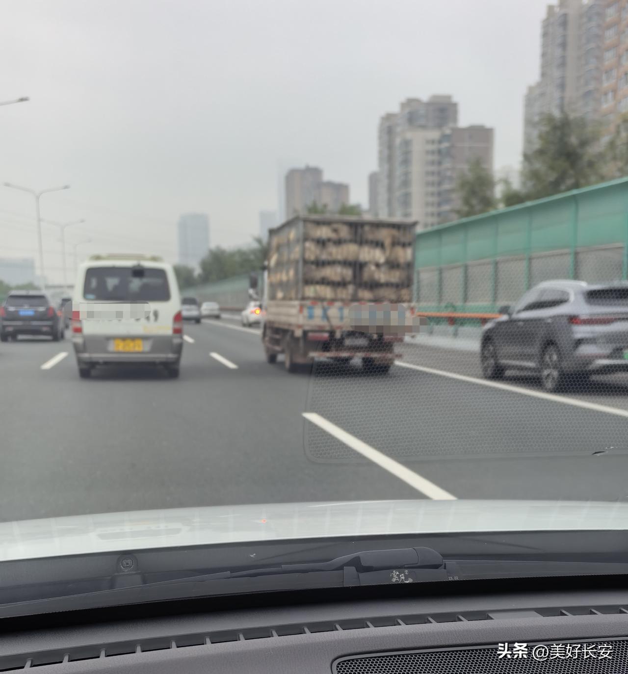 绕城高速上的贩羊人。 今天早上,在绕城高速上看到一辆满载活羊的货车,确实是比较