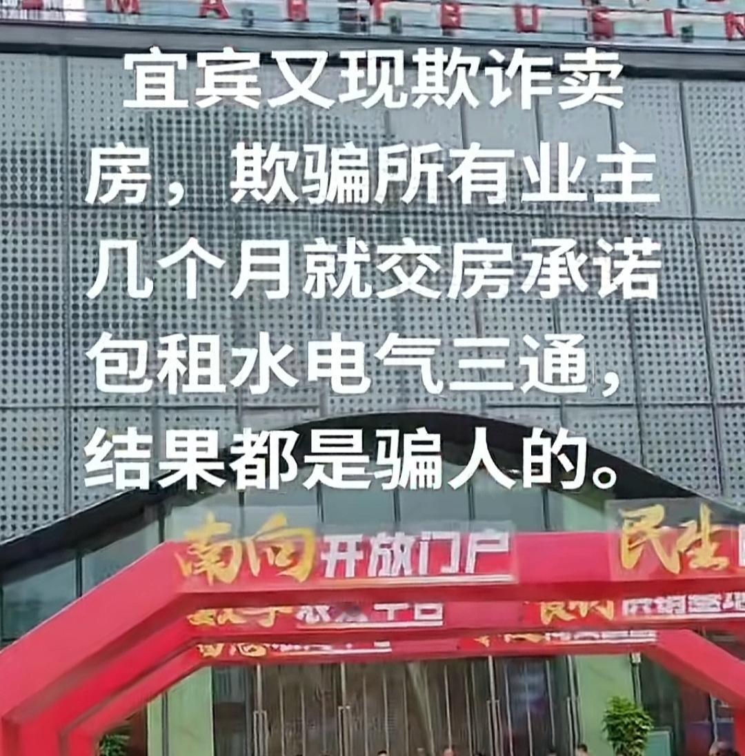 宜宾长江智慧商贸港又现楼盘欺诈买卖! 近日,多位网友爆料:宜宾长江智慧商贸港卖房时承诺“几个月交房、包租、水电气三通”,如今全成空话。 业主称,付款后交房拖到现在,包租收益没拿到,水电气也没通,甚至部分商铺“图纸有、实地找不到”,质疑被骗。 这不是宜宾商业地产首次出类似问题,此前鼎仁国际商贸城也因“包租”承诺落空维权。 目前开发商未回应,业主正寻求协商,律师建议保留证据,找住建部门、消协投诉或走法律途径。 民生烂尾楼 网眼看宜宾