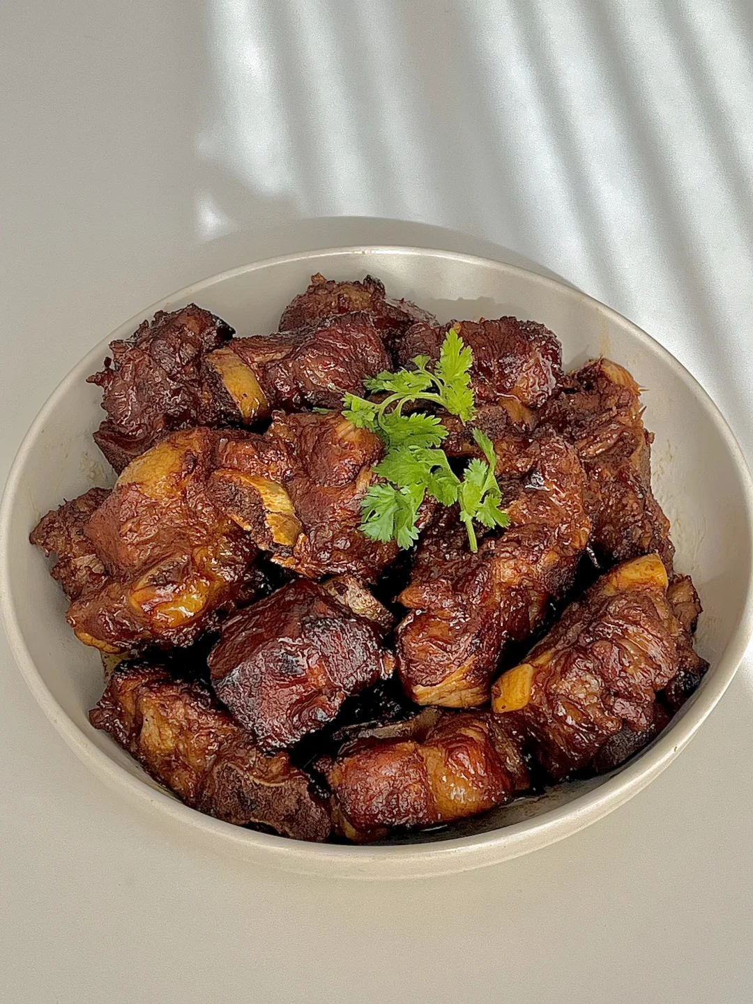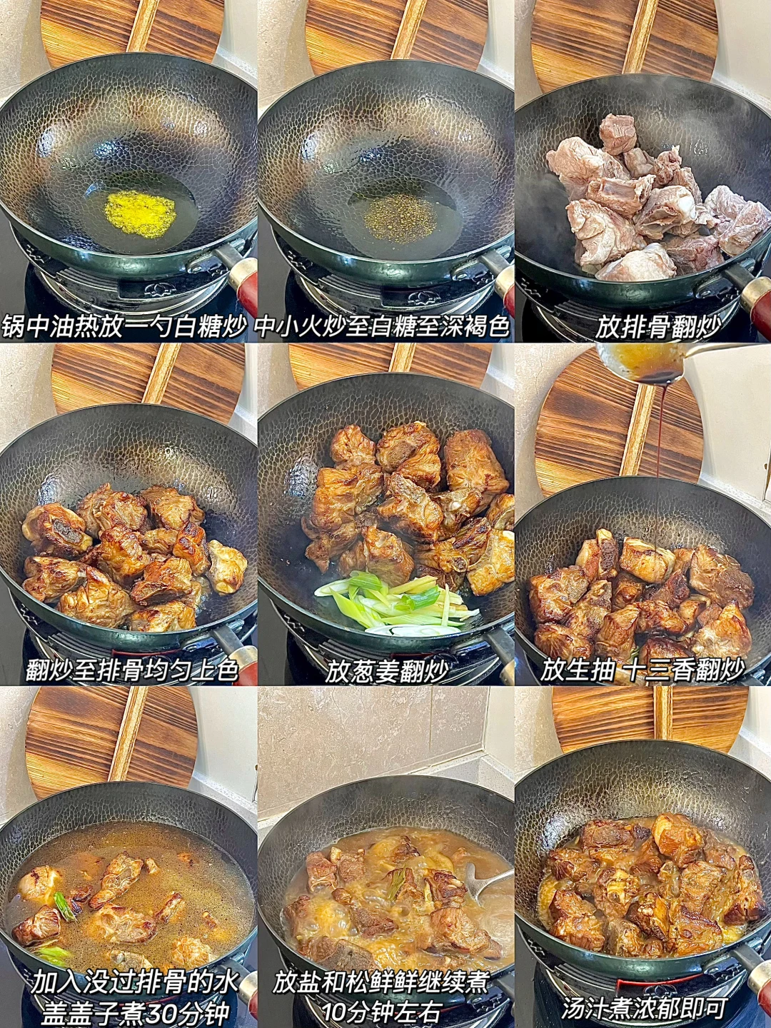 今日份美食分享: 红烧排骨 . 食材:排骨 葱姜 做法如图上⬆️ . 分享一道过节必备的~红烧排骨👏 就爱吃自己做的排骨,软烂入味贼好吃😋
