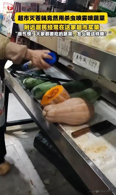 10月14日,四川成都一男子逛超市时,竟看到工作人员用杀虫喷雾喷蔬菜!找超市讨要说法,却被告知用的是无毒的杀虫剂,专门杀蚊子的,之后把蔬菜全给扔了。网友:既然没有毒为什么要扔?[不看] 当日成都一位顾客在超市生鲜区买菜时,听到了喷雾的声音,转头一看,工作人员正拿着一罐杀虫剂,对着货架上的蔬菜喷。 从青菜、白菜到切开的南瓜,工作人员一路喷过去,没有跳过任何一个品种,顾客觉得不对劲,立即用手机把这个过程录了下来。 拿着视频去找超市管理人员,得到的回复是:"用的是无毒杀虫剂,对人体没有伤害,主要是为了驱赶蚊虫",但没过多久,超市就把喷过的蔬菜全部撤下来扔掉了。 这个操作让人看不懂,既然说是无毒的,为什么要全部丢弃?如果有问题,为什么要当着顾客的面直接往菜上喷?视频被发到业主群后,很快就炸了锅。 市面上确实有一些低毒或者相对安全的杀虫产品,但"无毒"不等于可以直接接触食物,就像洗洁精也标着食品级,但你不会直接往菜上喷吧? 任何杀虫剂,哪怕成分再安全,也是设计来杀虫的,不是给人吃的,喷在蔬菜上,药剂会附着在表面,形成残留,这些残留能不能完全洗掉,会不会对身体有影响,谁也说不准。 超市后来把菜扔了,恰恰说明他们心里也没底,如果真的确定没问题,为什么不继续卖?这种自相矛盾的做法,反而更让人怀疑他们平时是不是也这么干。 这次事件里的工作人员,大概是图省事,拿起杀虫剂就喷了,根本没考虑后果,这说明超市在员工培训上存在很大问题,连基本的操作规范都没教。 如果看到工作人员在生鲜区喷什么东西,不管他说是什么,最好还是避开不要买,或者直接问清楚,必要时可以拍照留证据,遇到这种情况别不好意思,涉及吃的东西,小心点总没错。 有人可能会说,超市每天那么多虫子,不处理怎么办?这话没错,但处理方式有很多种,比如控制好温度湿度,及时清理坏掉的蔬菜水果,保持环境整洁,虫子自然就少。 如果一家超市连基本的卫生都做不好,蔬菜摆得乱七八糟,地上到处是烂菜叶,那最好还是换一家,这种地方出问题的概率更高。 这次这位顾客做得很对,看到问题马上拍下来,然后向超市反映,最后还把视频分享出来提醒其他人,这种监督作用很重要,能促使商家更注重细节。 看到此视频的网友们直接炸锅了。 “今天还在这家店买了菜,现在整个人都不好了!不管有没有毒,喷完再卖给人吃,这操作也太离谱了,真没问题你扔什么?这不就是心虚吗?” “再‘无毒’的杀虫剂也不是拿来喷在菜上直接吃的,最多是环境喷洒。超市生鲜区晚上闭店后消杀才是正常操作,哪有在营业时间对着菜喷的?” “有些杀虫剂确实低毒,但喷在菜上不清洗就卖,谁敢保证没残留?” “这种基础安全意识都没有,平时生鲜区的卫生真的达标吗?熟食能不能保证不被污染?” “买菜真得留个心眼,现在看到品相特别好的菜,我都会多想一下为什么没虫眼。” “应该直接打市场监督管理局电话,光发群里没用,得让监管部门上门查。” 如果你在超市看到工作人员有类似不合规的操作,你会当场站出来指出,还是选择默默离开? 欢迎在评论区分享你的看法! 信息来源:百姓关注