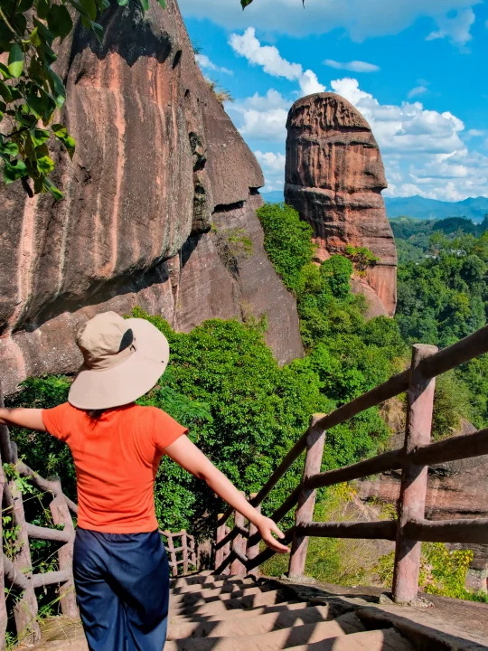 Day②:丹霞山景区入口景交车➠丹霞山博物馆➠中山门换乘➠乘坐公交到长老峰咨询处➠翔龙湖➠阴元石➠长老峰码头➠乘船游水上丹霞➠阳元码头下船➠爬阳元山➠细美寨看日落➠九九天梯下山➠返程