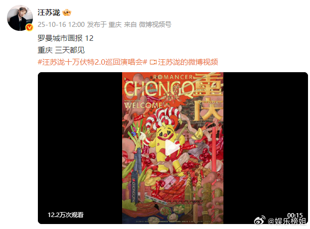 汪苏泷重庆三天都见汪苏泷演唱会官宣重庆。泷泷又可以吃火锅啦🍲10.17-10.19我们重庆三天都见!汪苏泷十万伏特2.0巡回演唱会