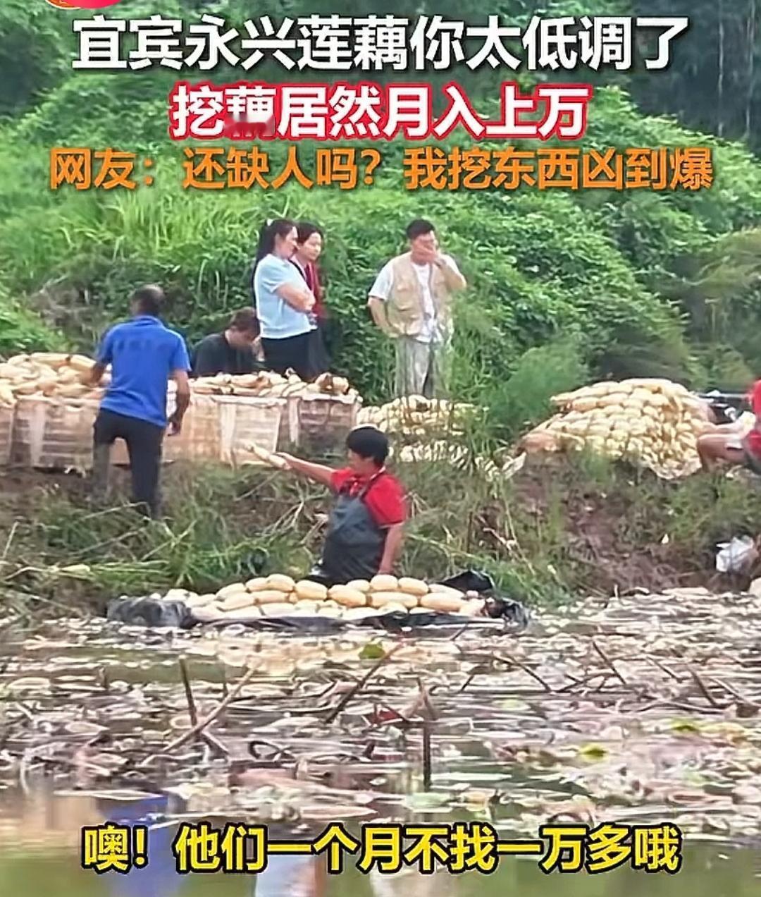 宜宾永兴这群人不得了,个个月入过万! 谁能想到,在宜宾永兴的荷塘里,藏着一份“低调到离谱”的高薪工作?不是写字楼里的白领,也不是直播间里的主播,而是埋头泥水中的挖藕人。 当多数人还在为几千块薪水精打细算时,这里的挖藕师傅早已悄悄实现“月入过万”。 冰冷的泥水没到腰腹,双手在淤泥里反复摸索,每挖出一根饱满的莲藕,都是实打实的收获。没有复杂的KPI,没有职场的弯弯绕,凭的就是一把子力气和“找藕准、挖得稳”的硬功夫。 “他们一个月不止一万多哦!”当地人口中的一句话,瞬间点燃了网友的热情。评论区里,“还缺人吗?”的呼声刷屏,有人调侃“我挖东西凶到爆,从小学挖红薯就没输过”,有人认真询问“需要啥技能?我能学!”,原本小众的挖藕活儿,一下子成了大家眼中“接地气的好机会”。 原来真正的踏实赚钱,从不在聚光灯下。宜宾永兴的莲藕低调,挖藕人更低调,但这份藏在泥土里的踏实与收获,却比任何噱头都更有吸引力——毕竟,靠双手挣来的每一分钱,都足够让人安心。 不过话说回来,虽然人家工资高,但也是实打实的用汗水和技术换来的。一份辛勤一份收获,小编觉得,他们勤劳致富,值得这份收入,大家觉得呢? 网眼看宜宾