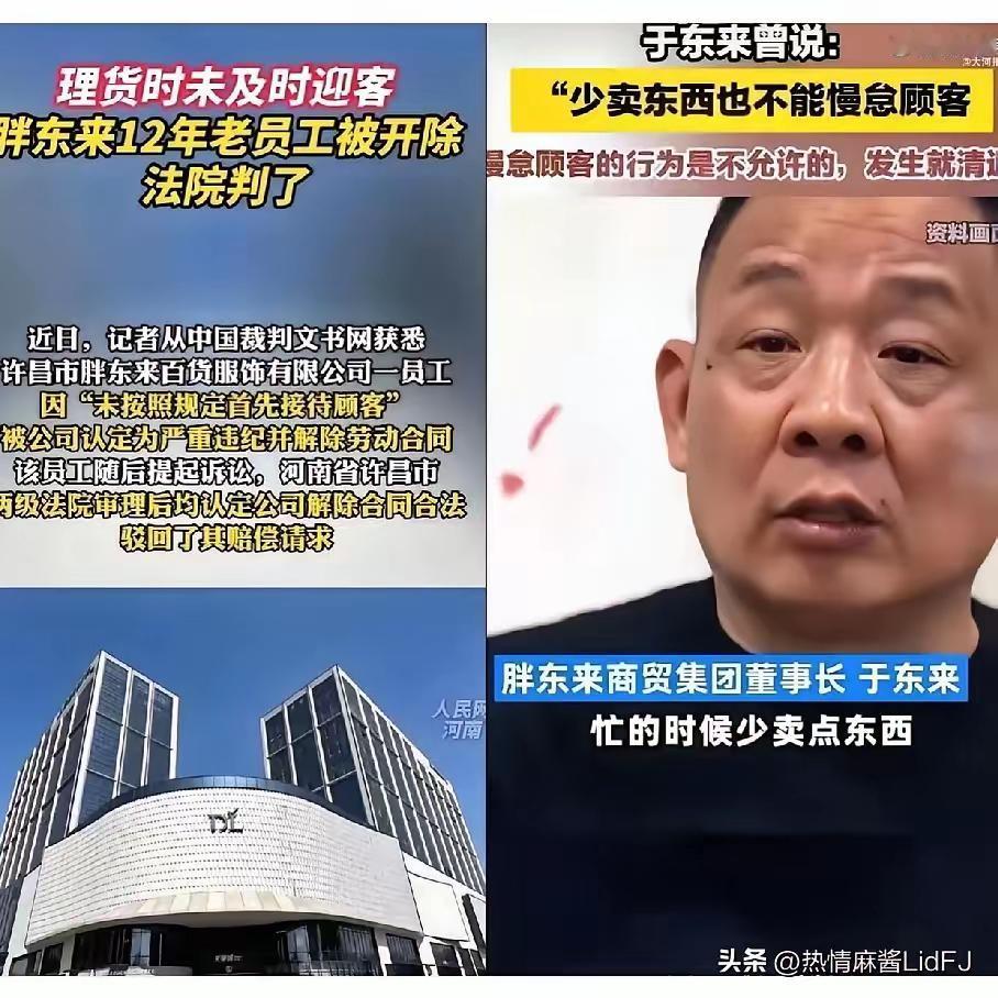 今晚,胖东来9000多名员工估计要失眠了 不是因为要失业了。 因为一名工龄12年的老员工,因未及时接待顾客被开除。 被开除的员工未必会睡不着,毕竟失业了总会有些准备。 让大家都睡不着的原因是,今后如果因为小失误被开除,那该多难受啊。 尤其是年轻的员工,更加不安。 说实话,这个开除有点杀鸡用牛刀了。 都知道东来哥重视服务,可再厉害的品牌,也做不到让所有顾客都满意吧?五星级酒店还会被投诉呢!说起来制度是大家认的,东来哥想靠严格提服务水平,长远看是为公司好,这点没毛病。 但说实话,这处罚也太“重”了,跟杀鸡用牛刀似的,也难怪员工们反应这么大,又是紧张又是害怕。你们觉得这事儿处理得合理不?要是你在胖东来上班,遇到这情况会咋想?