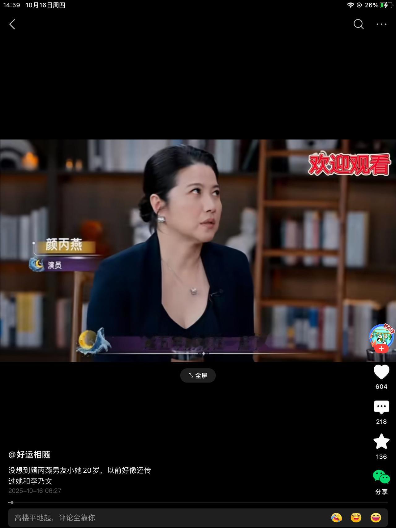 52岁的颜丙燕,找了小20岁的小奶狗。三十二岁,也不算多奶狗了。女大男20岁,这在娱乐圈里也算是挺大的一个差距了。第一次在李静的采访中羞答答的说出来。 见过男的大很多的,像张纪中,张艺谋。这几天拿出来被说的挺多的。女的并不多,王菲大霆锋11岁,马伊琍大文章九岁,还有吗?记不起来了。 采访中,颜丙燕提到有一次去买内衣,导购小妹说让你儿,儿子的儿说出来一个字了,颜丙燕听到了说,哦,那是我老公,让他进来吧。导购非常抱歉的道了歉。从那以后,男生每次出门逛街,都拉着女生。 女生也说,感觉自己是演员,也没生过孩子,感觉自己还算挺年轻的,没想到,其实外人的眼睛里,还是能够看出年龄的。 说的很诚恳。评论区里的怪声音还是有,只是不多。有说女 流 芒的。有说姐姐拼了大半生,值得吃点可口的。没有问题。注意到男生有独自留学在外的经历,可能看尽了世间繁华,感觉姐姐才是理想型。 颜丙燕,早年间很努力的拍戏,基本没什么绯闻。李乃文是评论区出现频次最高的了,好像也没有下文。如今自己曝出恋情,满眼幸福。也祝福姐姐幸福美满。