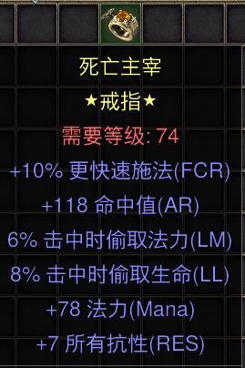 暗黑二重制版国服战网拍卖极品之黄金戒指 赛季极品大货。 10施法,118命中,6