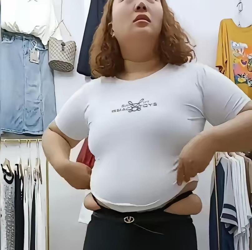 跟朋友来看衣服 她看上了一条牛仔裤 咋劝都不听 穿上都把我笑的不行了 她这审美咋