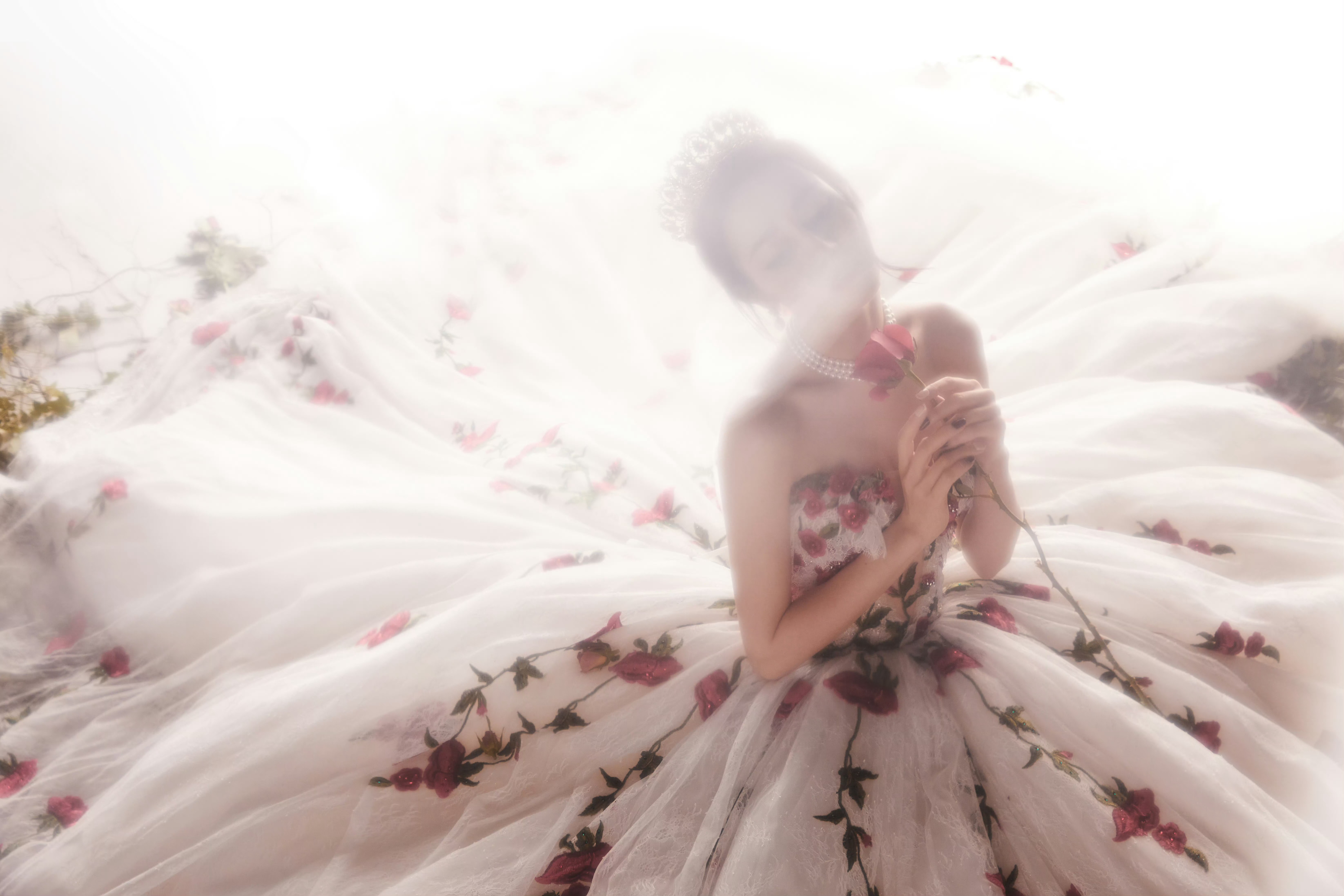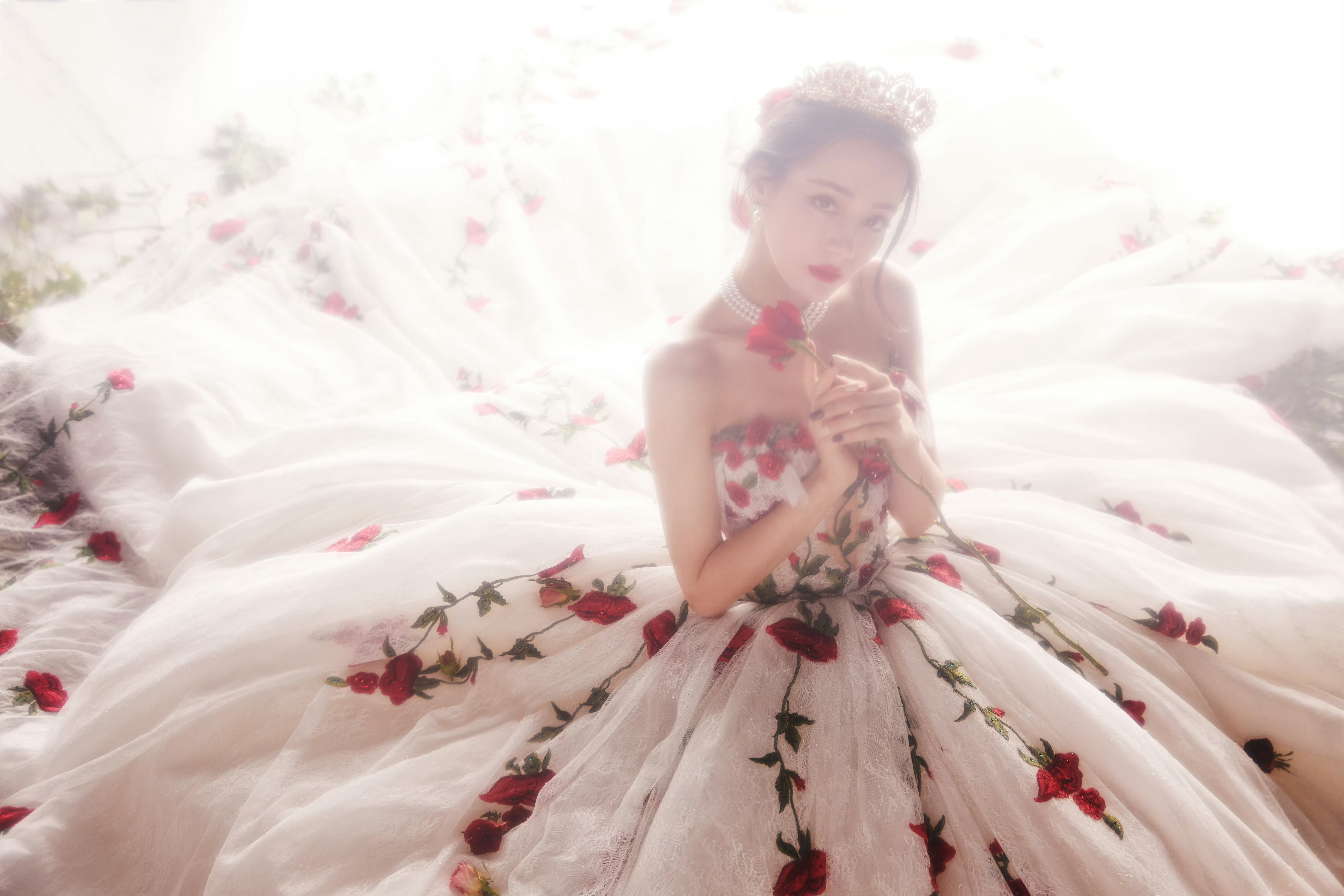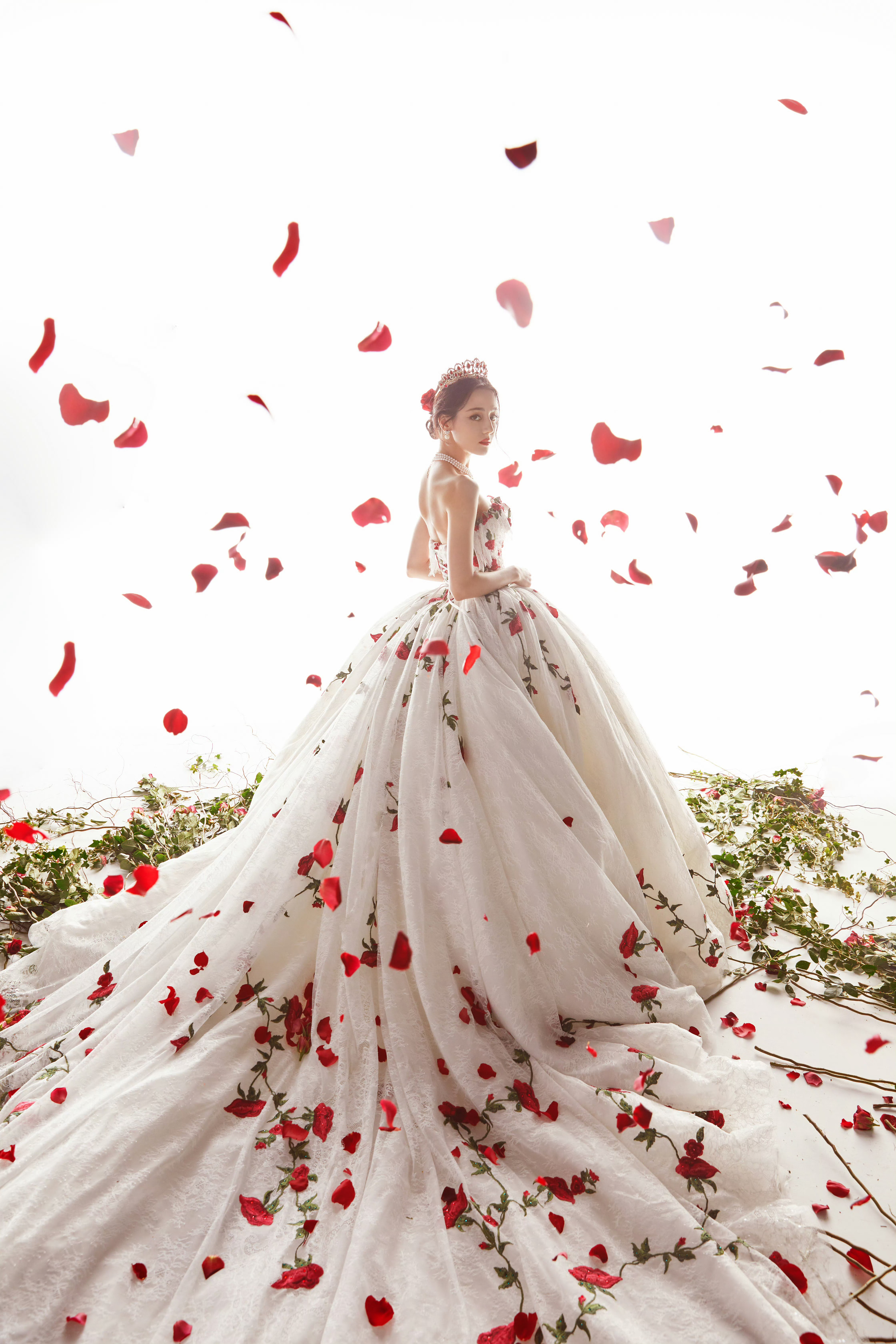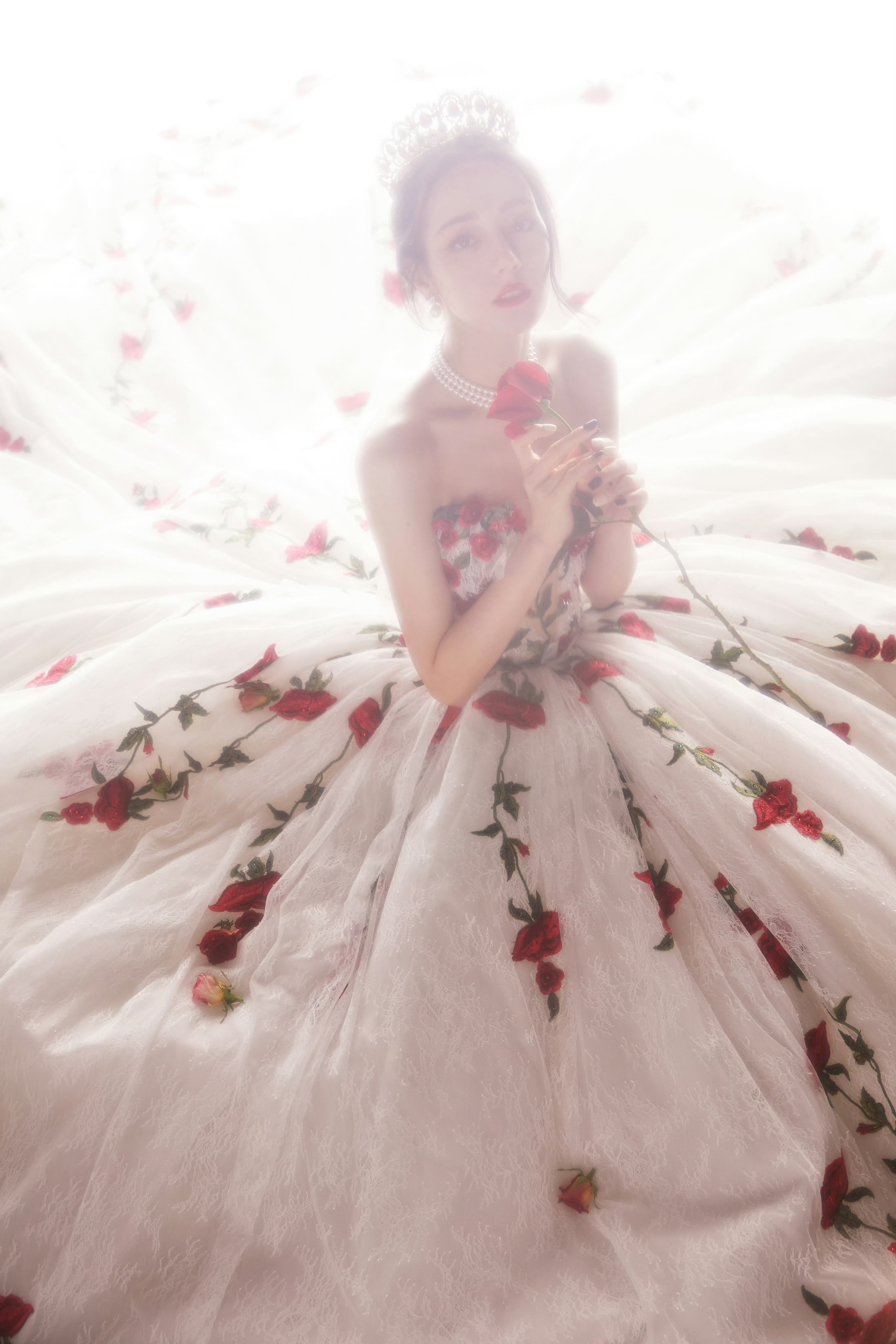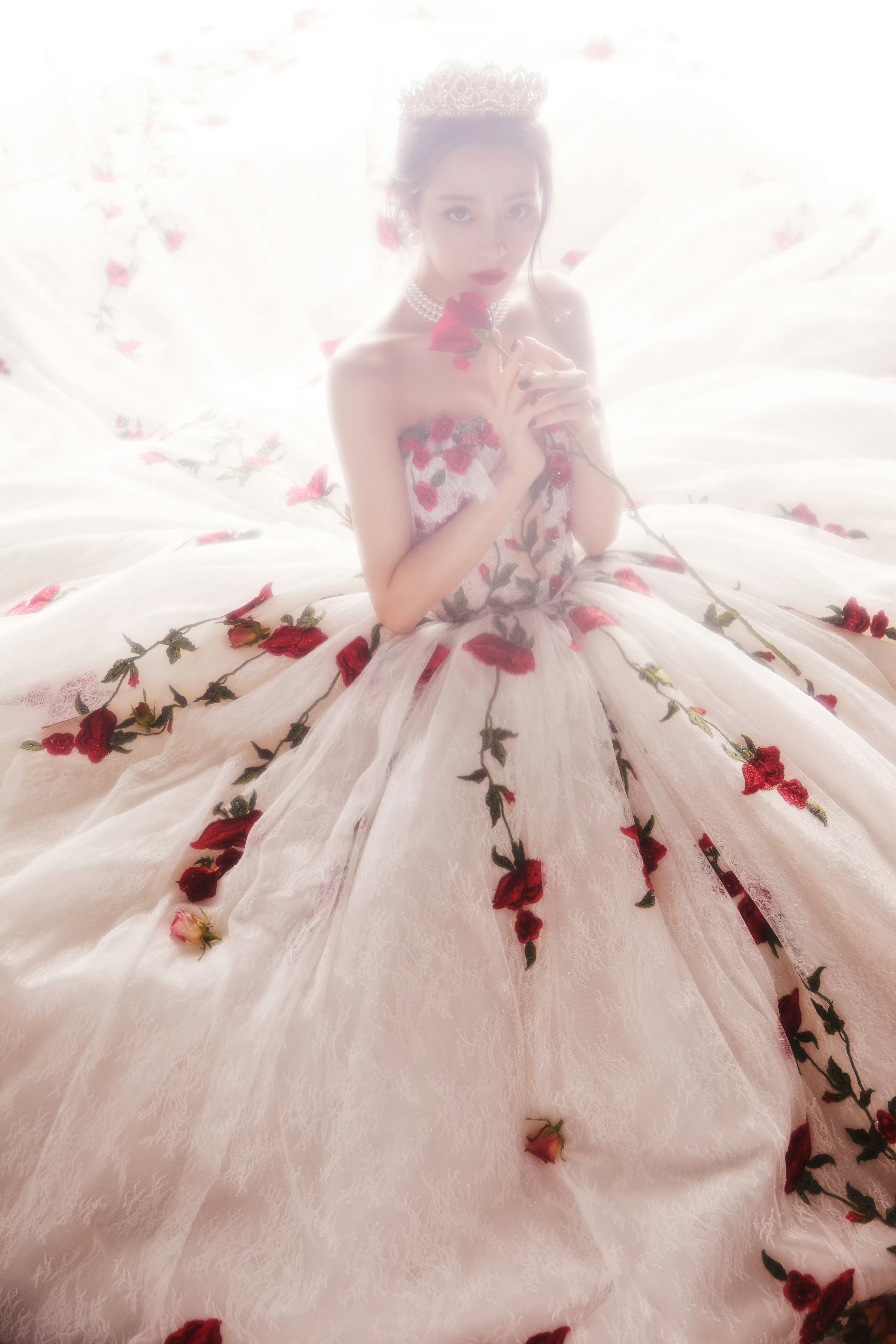以花为题,最令人难忘的肯定是迪丽热巴这组Amelia Casablanca玫瑰刺绣拖尾白纱裙造型,高贵冷艳、气质超凡~🌹