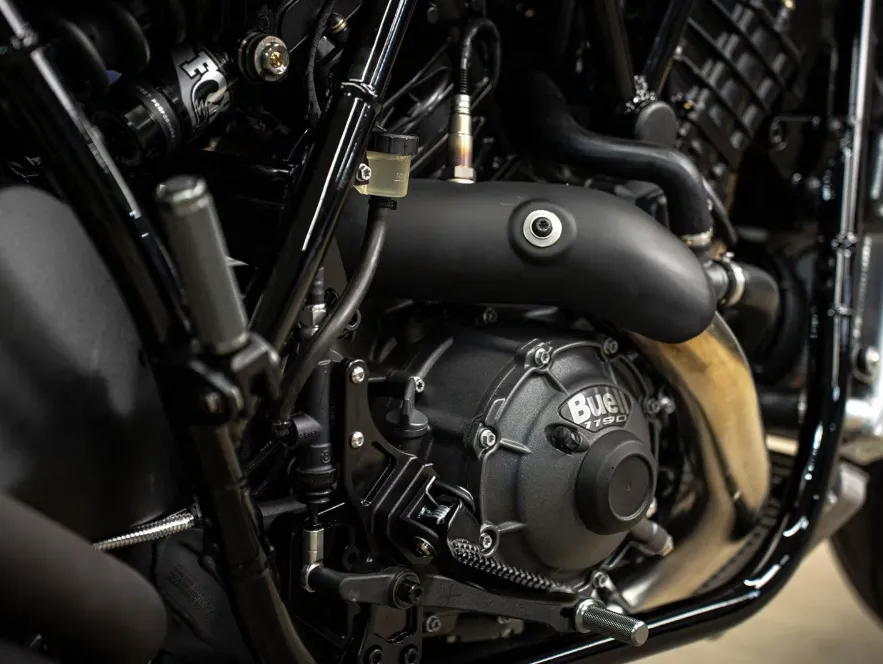 车头LED大灯与尾部Saddlemen一体式座椅形成流线型呼应,17英寸合金轮毂与邓禄普Sportmax运动轮胎的组合,则暗示其不止于巡航的野心。悬挂系统标配FOX倒置前叉与单筒后避震,支持压缩/回弹阻尼调节。制动系统采用Brembo对向四活塞卡钳与320mm浮动盘。Super Cruiser的量产也标志着Buell品牌正式回归市场,主打 “性能+风格” 的高端小众巡航市场,与哈雷、印第安主导的传统美式巡航市场形成差异化竞争。