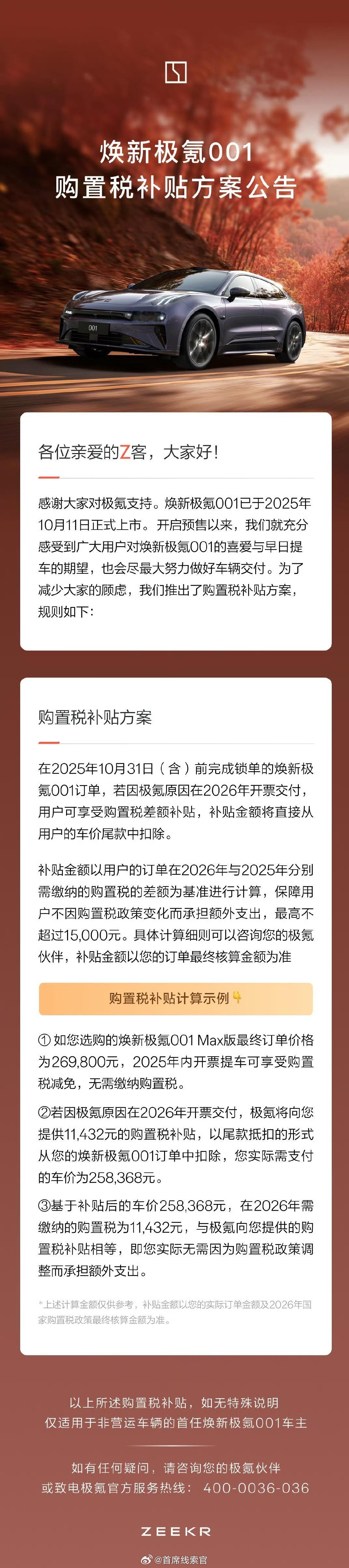 -25 年 10 月 31 日 24 点前锁单的用户,因极氪原因在 26 年开票,最高 15000 元购置税差额补贴。