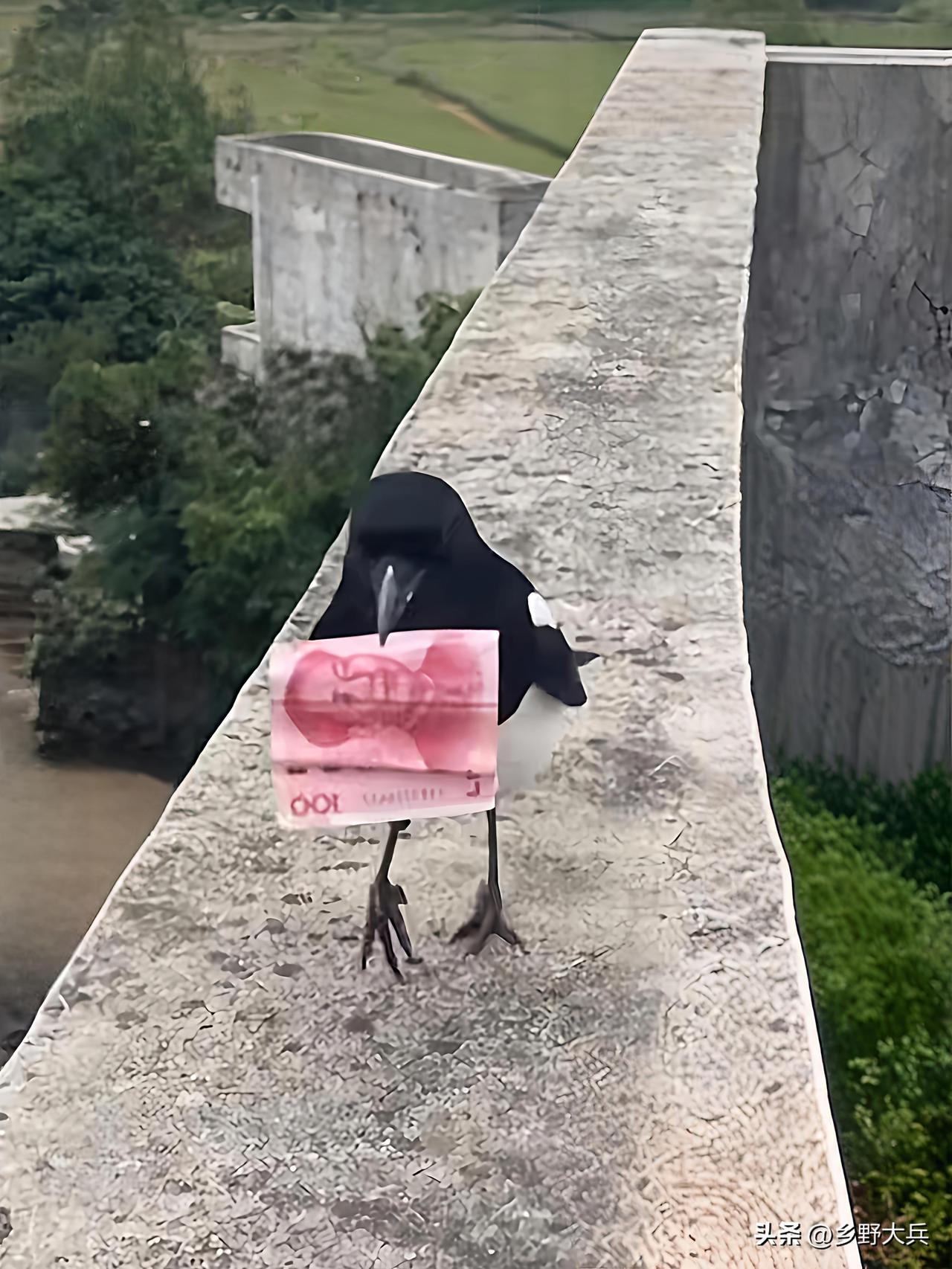 今天运气真好碰到一只送财鸟,阳台上看到一只小鸟叨着100元飞过来,小鸟似乎想表达