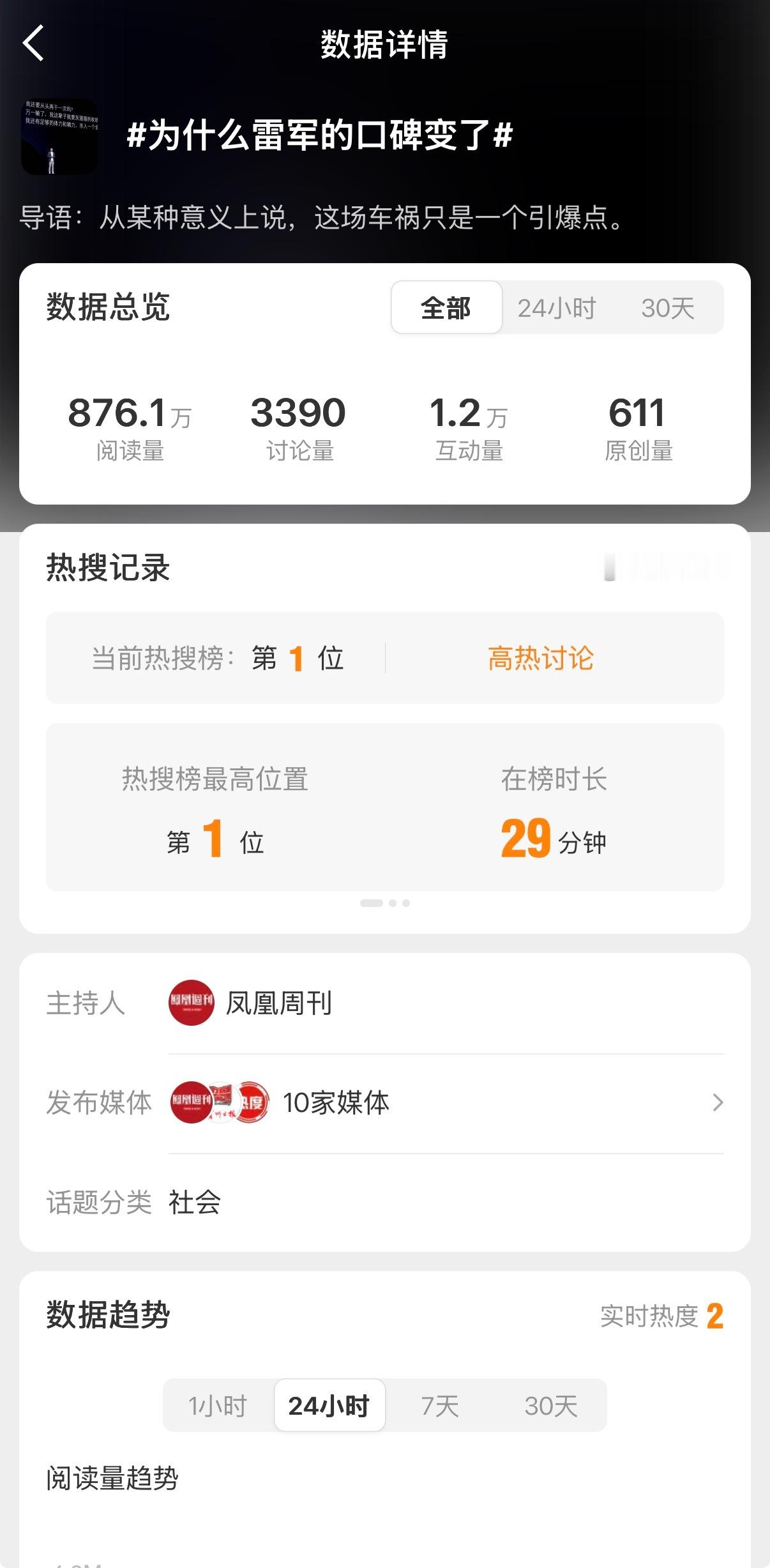 刚刚,凤凰周刊发布话题为什么雷军的口碑变了 ,在讨论量三千出头的情况下直接推到热搜第一。
