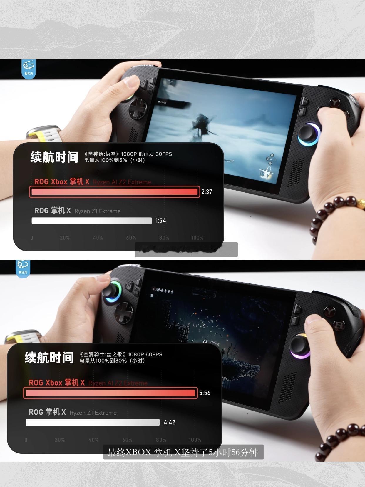 掌机玩家以前过的都是什么苦日子!! 今天发布的ROG XBOX掌机X,多少有点离谱了!! ROG通过跟微软XBOX联手,把过往掌机存在的系统不适配、续航拉胯等老毛病都治得服服帖帖!! 包括极客湾、大狸子切切里、贪玩歌姬小宁子等好几位UP主都给到了很高的评价~ 以前掌机带出门玩3A的话,基本一个多小时就歇菜了,现在这款ROG XBOX掌机X就算是玩黑猴,也都能撑两个半小时以上,而且如果是玩《空洞骑士:丝之歌》这样的游戏更是能坚持5个多小时,玩家坐飞机玩起来就更从容了,从起飞到落地都不用怕没电~ 系统上,全新的XBOX全屏模式简直救了Windows掌机!一键进入游戏主界面,全程支持手柄操作,后台自动清理进程,像主机一样丝滑。休眠12小时还能直接唤醒,掉电不到3%,这能效真的顶。 搭载AMD最新锐龙AI Z2 Extreme芯片,低功耗模式下性能甚至提升30%,各种主流3A流畅运行都没压力。 对于这样一款软硬件双重进化的掌机来说,首发6499到手,市场上应该找不到比它更香的了吧?