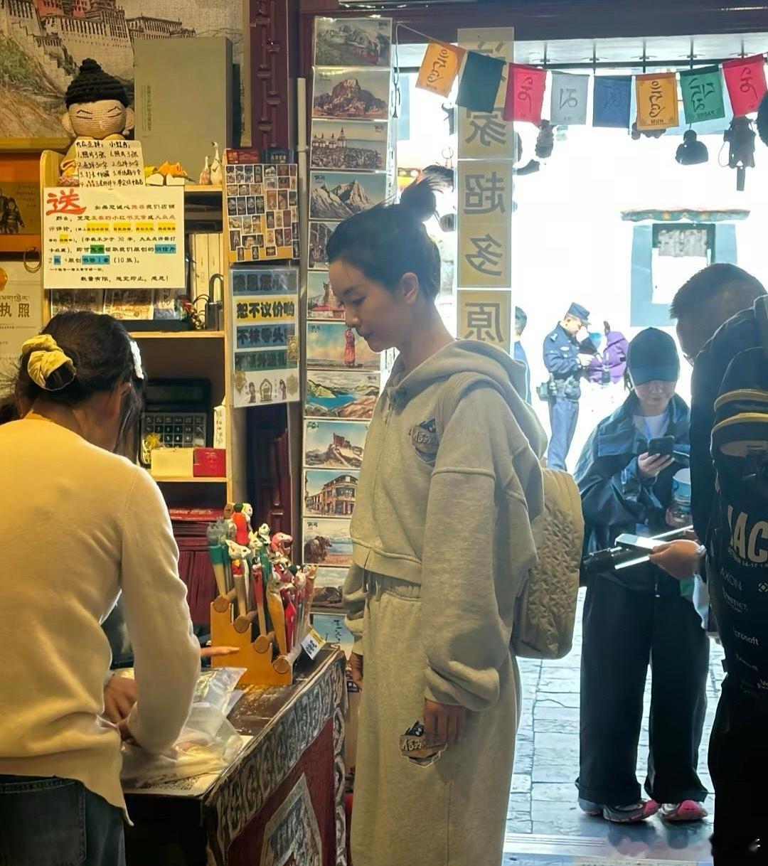 40岁李晟西藏旅游,一个人到八廊街购物,扎着丸子头,穿衣打扮低调又不失时尚,皮肤好到爆,看起来元气满满,这姐真是越活越年轻了