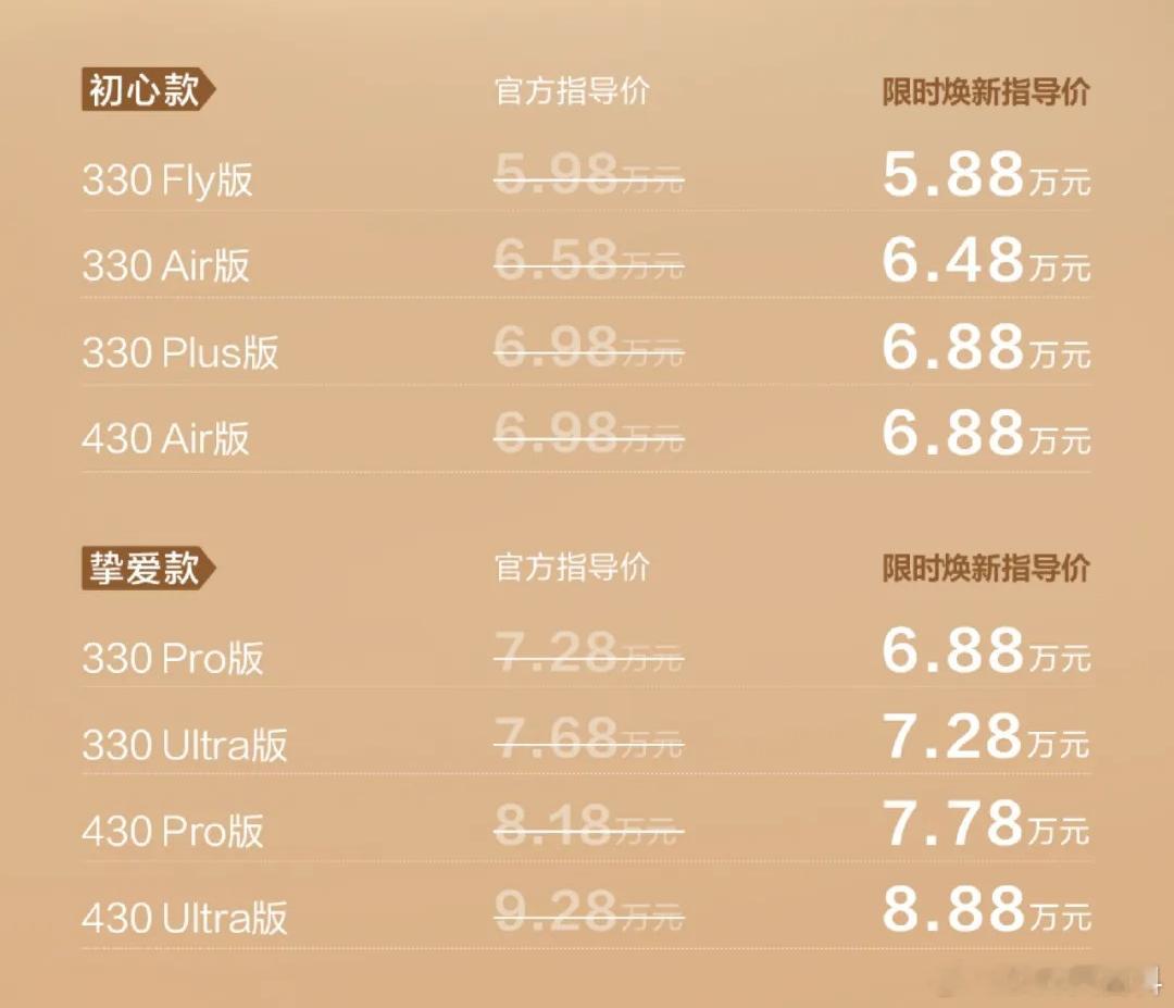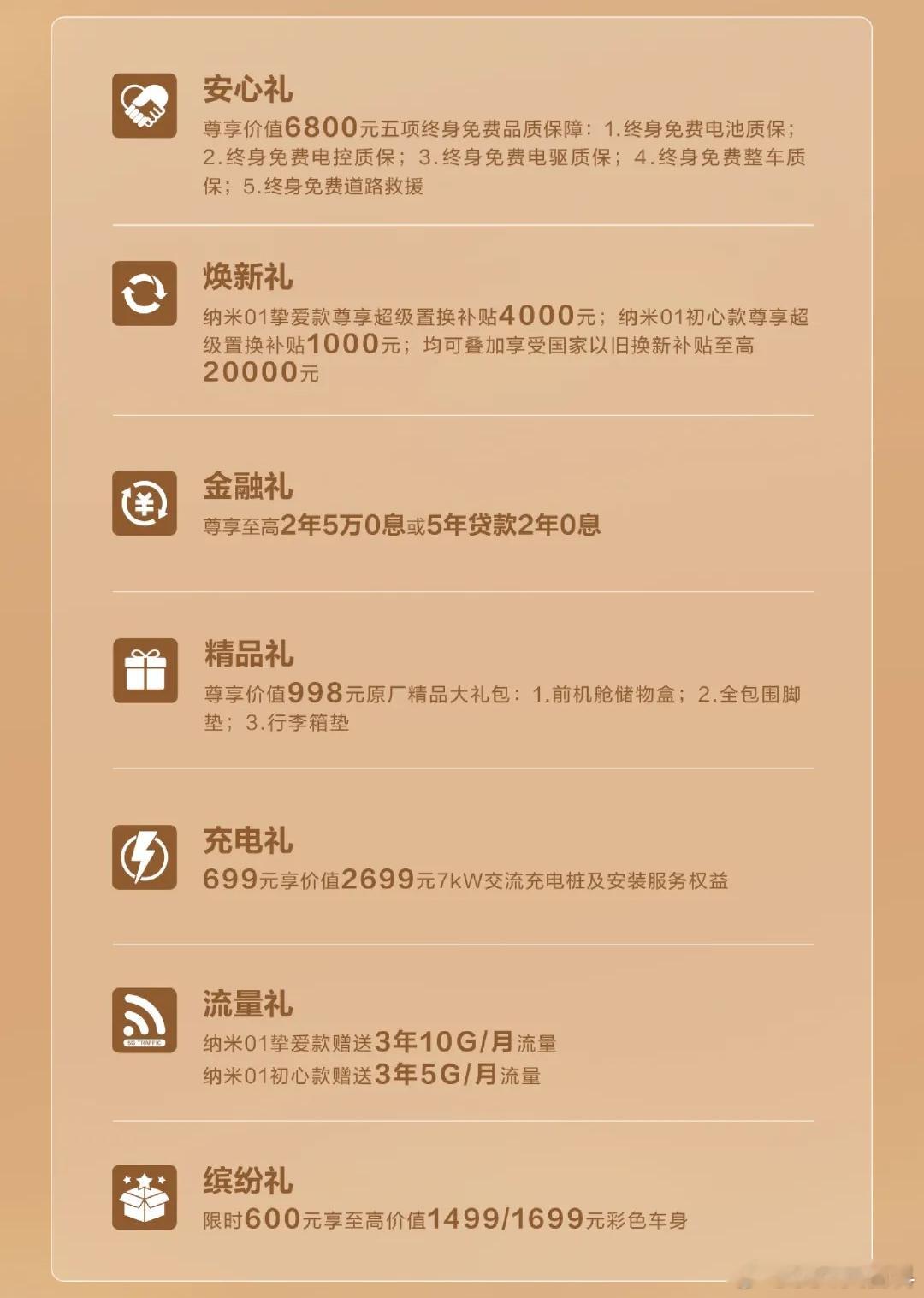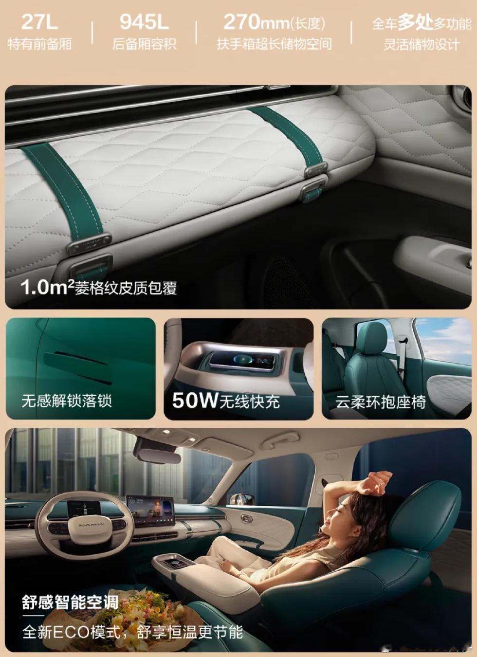 先看纳米01,全系8款车型,限时焕新售价5.88-8.88万元,这可是个轴距2663mm,同级唯一无框门+前备厢的小电车,价格率先打进5万级,这是要给缤果、星愿、海鸥、MG4上上眼药啊[震惊]