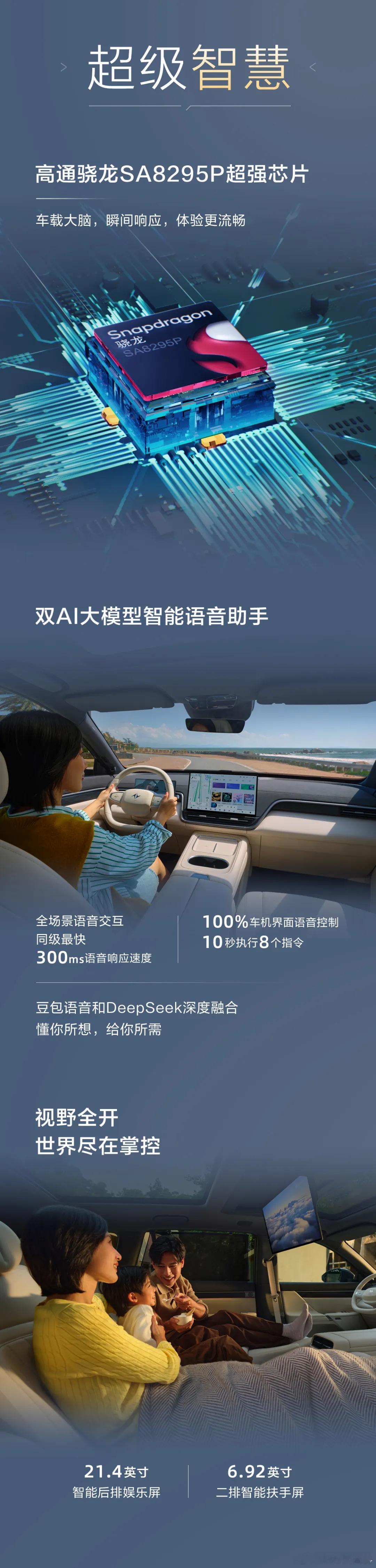 车机系统支持全场景语音交互、可见即可说、豆包/DeepSeek深度融合、分屏界面显示,UI界面/情景模式画面焕新