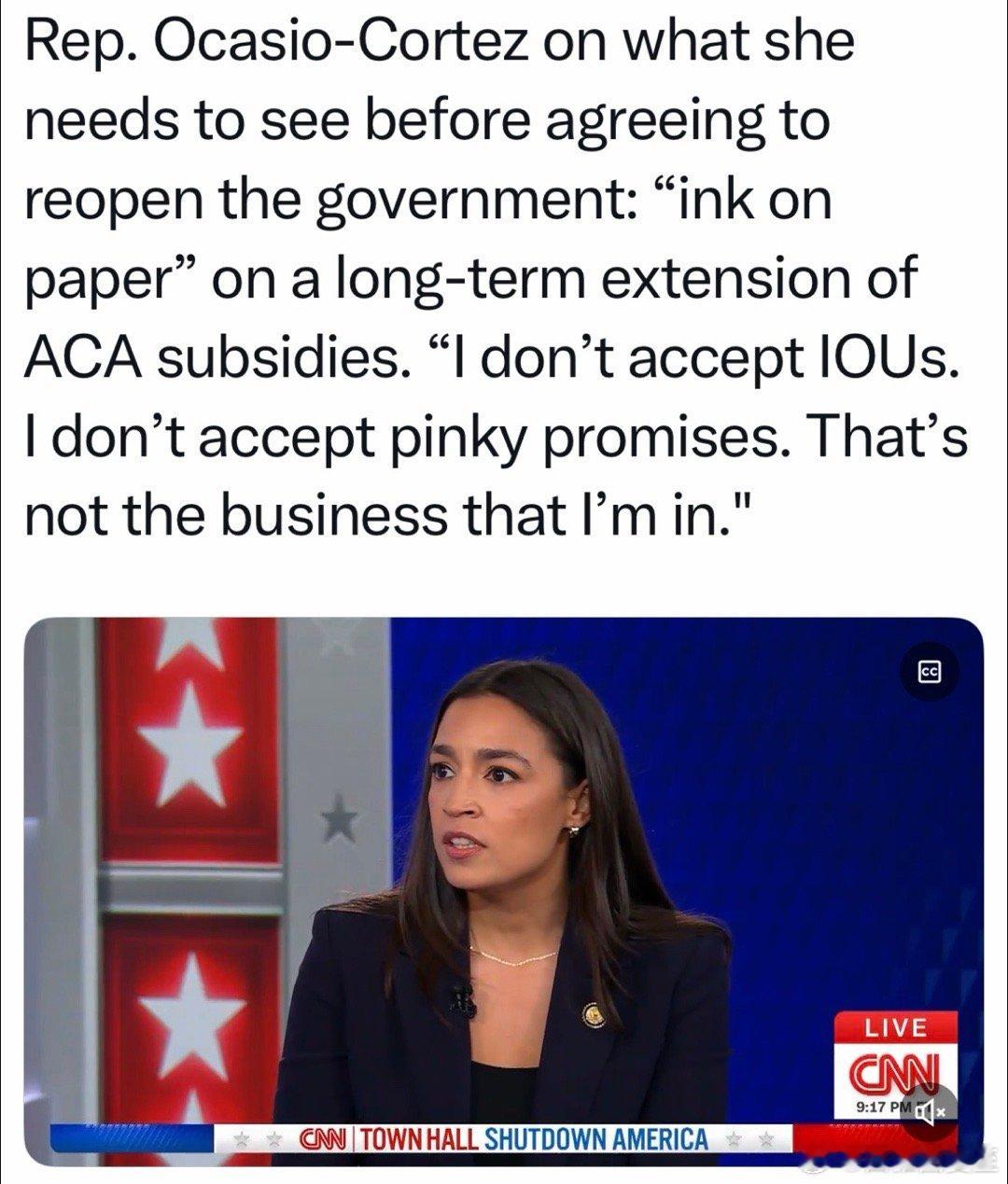 AOC:白纸黑字,把“医保补贴长期延续”写进法案,干我们这一行,不收欠条、不信承诺