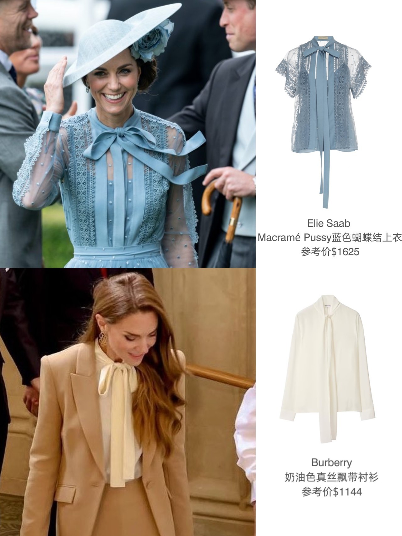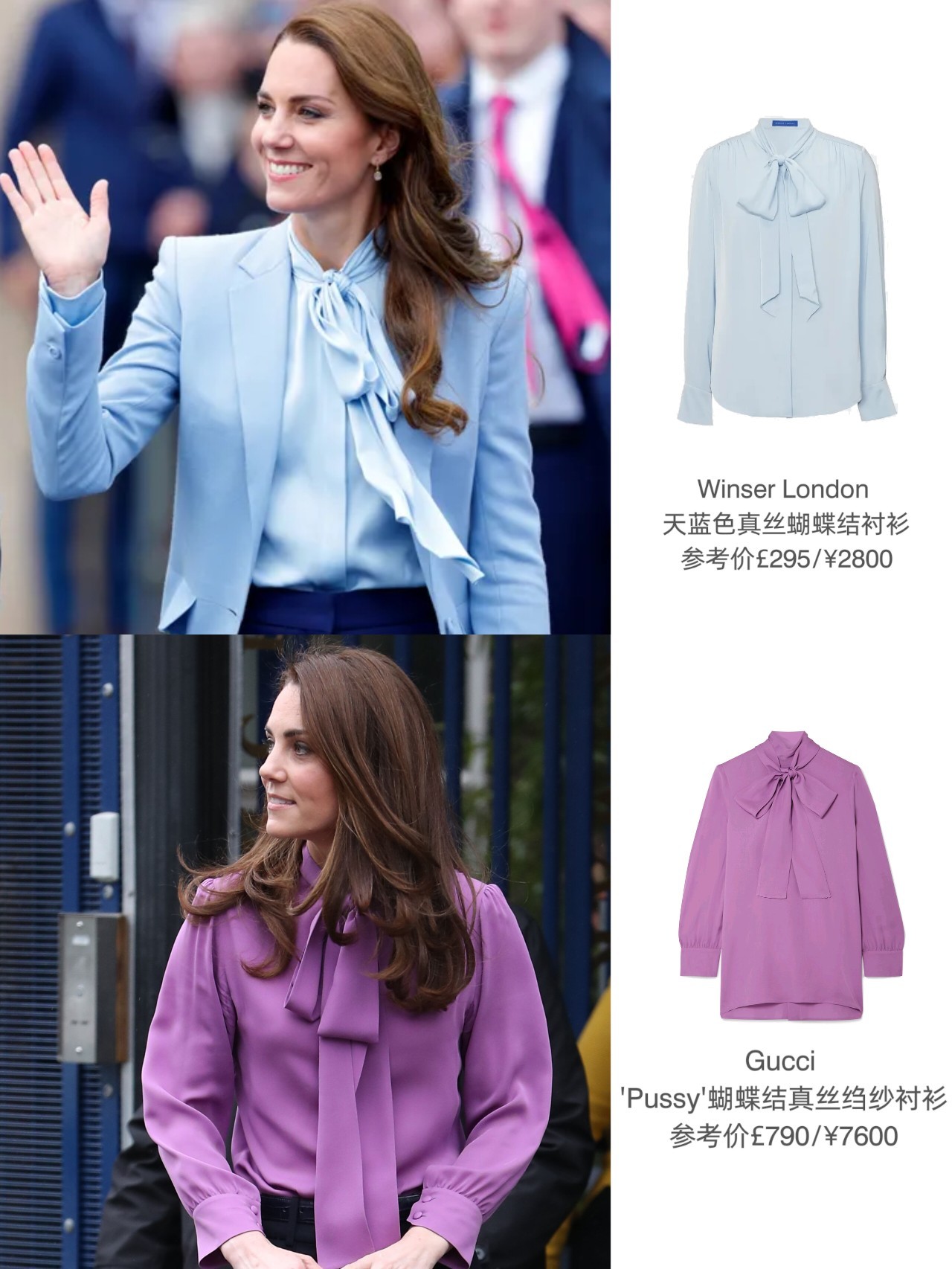 这次来篇汇总~这类(带有蝴蝶结元素的衬衫)在她衣橱很常见,大多都是飘带衬衫,被以蝴蝶结的形式呈现,除衬衫外,裙装、大衣、手拿包、礼帽、手套以及腰带(部分放于评论区)等单品,都能看到蝴蝶结元素……确实这一元素起到的装饰性hin强,也有时尚加持效果(例如凯特去年出席君主官方生日庆典所穿的Jenny Packham),从凯特拥有这类元素单品的数量看,是真·爱没错了~