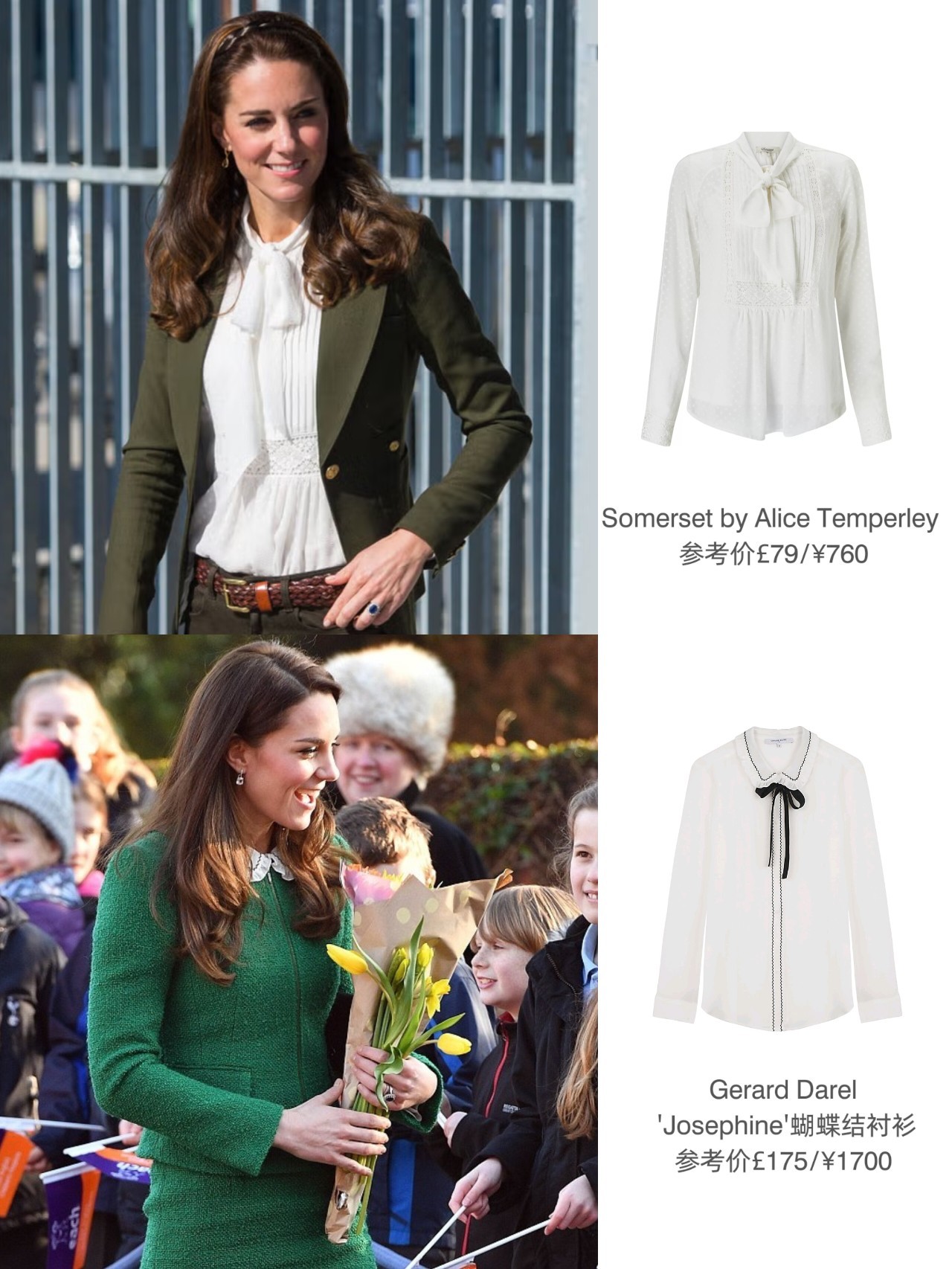 之前有段时间因为凯特较为有集中性的几场公务中多套LOOK先后有蝴蝶结元素,不少英媒还就她这个时尚小偏好报道过……