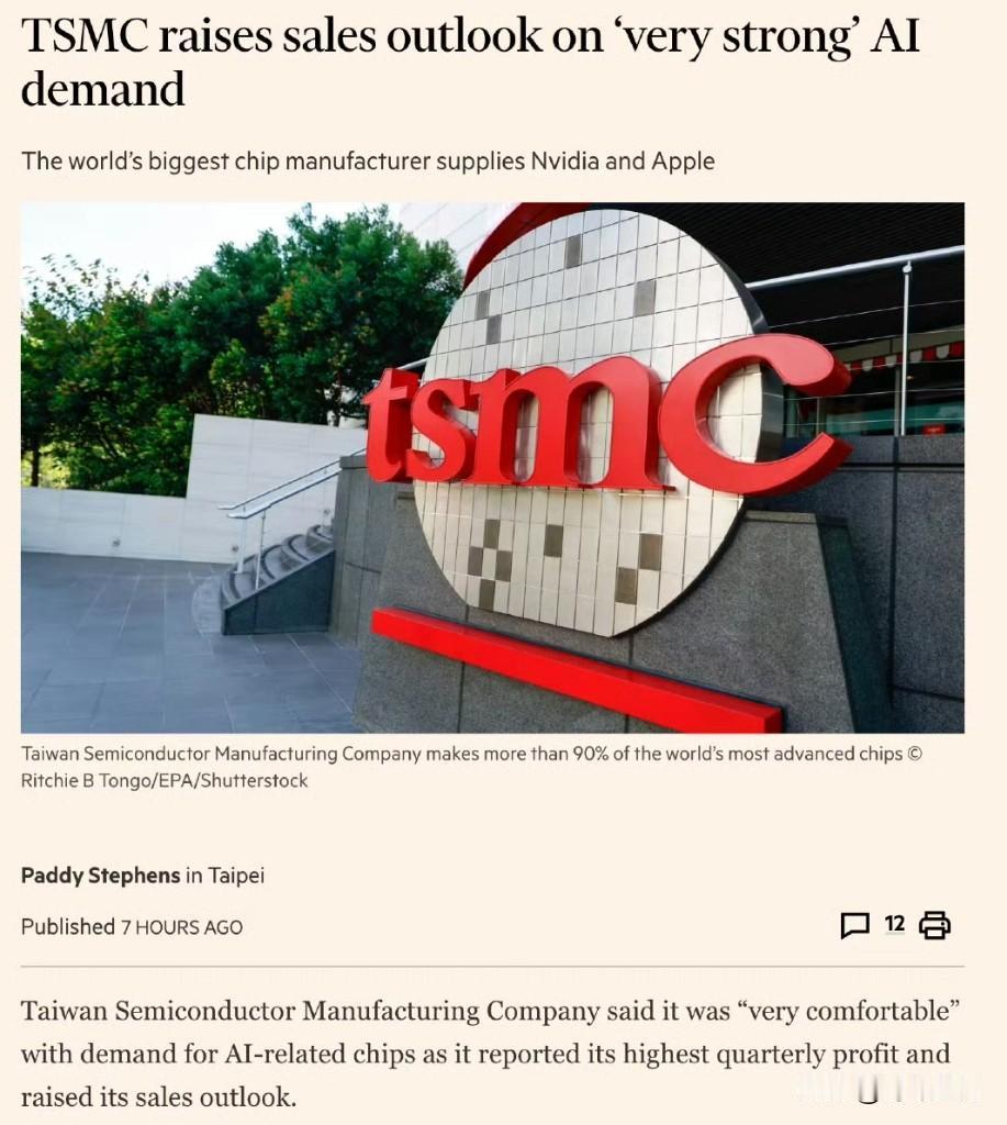 台积电今年再次上调对2025年收入增长的预测,预计将增长30%左右 台积