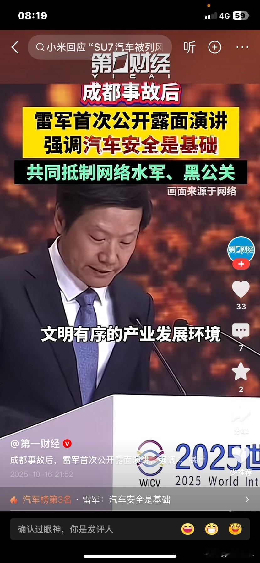 雷总最新演讲 严厉打击网络水军,黑公关! 看来小米应该是受到了网络水军的打击,这次我站在雷总这边,因为那边站不下了[笑哭]小米雷语 雷军