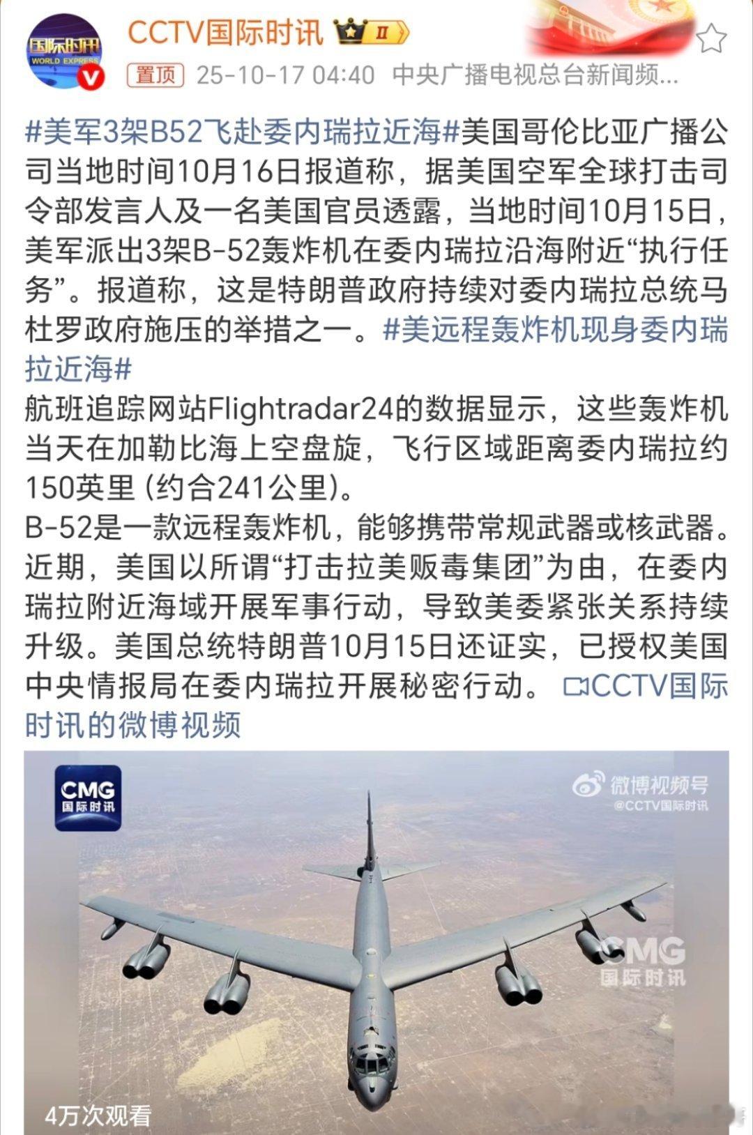 美军3架B52飞赴委内瑞拉近海美国🇺🇸还是一如既往的自以为是的想当然自己世界,现在也不说和平了,真的是双标狗🐩