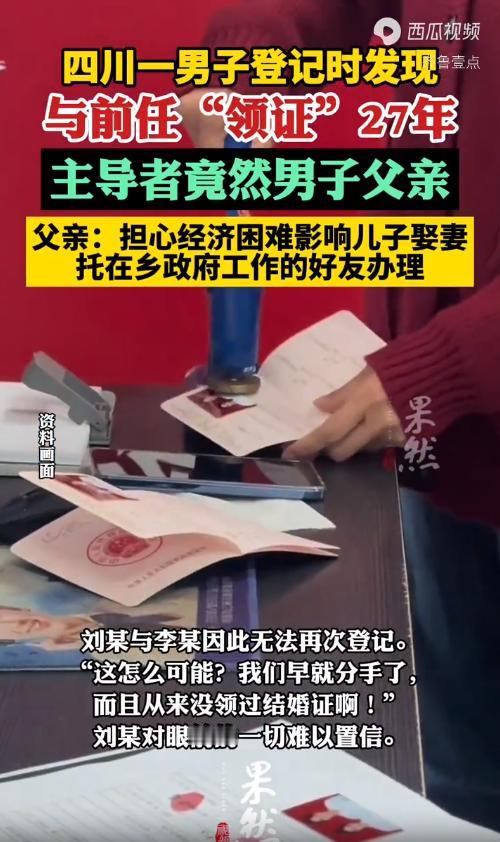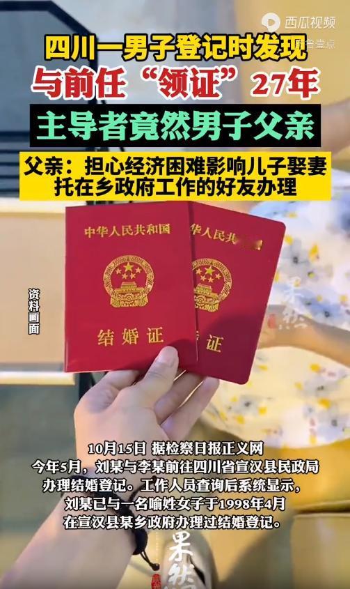 2025年5月,一男子带着女友去办结婚证,可系统却显示27年前他就已经和前女友领证,这可让男子纳了闷,其实,这一切竟都是他的父亲捣的鬼!网友:这离谱到像是短剧照进现实! 2025年5月的四川达州宣汉县民政局办事大厅,人来人往都带着对婚事的期待。刘某攥着和相恋多年女友李某的材料,排了好一会儿队才轮到。 工作人员接过材料录入系统,手指在键盘上顿了顿,抬头说的话让两人瞬间僵在原地,系统显示刘某已经结过婚了,1998年4月就和一个叫喻某的女人登记过。 刘某当时就懵了,手里的户口本都差点没拿稳。 他和李某对视一眼,都从对方眼里看到了难以置信。 刘某明明只在1998年和喻某处过一阵对象,春节带回家一趟后没多久就分手了,别说领证,连提都没提过这事儿。 可系统里的登记信息清清楚楚,这张凭空出现的“结婚证”,直接拦住了他和李某的领证路。 民政局的工作人员也觉得这事蹊跷,按照和检察院约定的衔接机制,把这条线索移了过去。 承办检察官调来了1998年的那份婚姻登记档案,一翻就发现了不少问题。 档案里该签字的地方是空的,本该贴两人合照的位置也是一片空白,更离谱的是,女方喻某的身份证号根本查不到,是个空号。 顺着这些疑点往下查,真相慢慢浮出水面,说出来让人哭笑不得。 当时刘某和喻某谈恋爱,过年的时候将喻某带回来家里。 刘某家条件不好,他父亲一直担心他成不了家,看好不容易带回来一个,想着把事情定死,就动了歪心思。 他瞒着儿子和喻某,找了当时在乡政府管婚姻登记的好友王某。 王某抹不开情面,就在两人都没到场、连基本材料都不全的情况下,偷偷造了份假档案,把婚给“登”了。 这事儿一曝光,网友们都议论纷纷, 有人好奇,喻某这么多年没发现吗,难道她一直没办过婚姻登记? 还有人算了算时间,1998年到现在快三十年,刘某现在估计快五十了才结婚,调侃他父亲当年的担心倒是没说错。 更多人觉得荒唐,老一辈的好心怎么就办成了坏事,一张假证让刘某背了二十七年的“已婚”名头。 好在事情没有一直僵下去,检察院核实清楚后,认定这份登记完全是违规操作,依据相关规定给民政局发了检察建议,建议撤销这份虚假登记。 民政局很在10月15那天,工作人员就把撤销婚姻登记的决定书交到了刘某手里,他长舒一口气,压在心里的石头总算落了地。 随后,他的婚姻状态改成了未婚,和李某顺利领了属于他们的结婚证。 这事看着像戏剧,却藏着不少值得琢磨的地方。 有网友说,这就是父母过度干涉孩子生活的教训,婚姻这么大的事,怎么能瞒着本人瞎操作。 也有人提到,当年的登记系统不完善、流程不规范,才给这种违规操作留了空子,放在现在根本不可能发生。 还有人提醒,大家真该定期查查自己的身份信息,谁也不知道会不会有这种“惊喜”找上门。 刘某的遭遇算是圆满解决了,但也给不少人提了醒。 不管是出于什么好心,违规的事情都不能做,一时的侥幸可能会留下几十年的麻烦。 而那些过去因为流程不规范留下的遗留问题,也靠着现在更完善的制度和部门协作慢慢解决,这或许就是最实在的进步。
