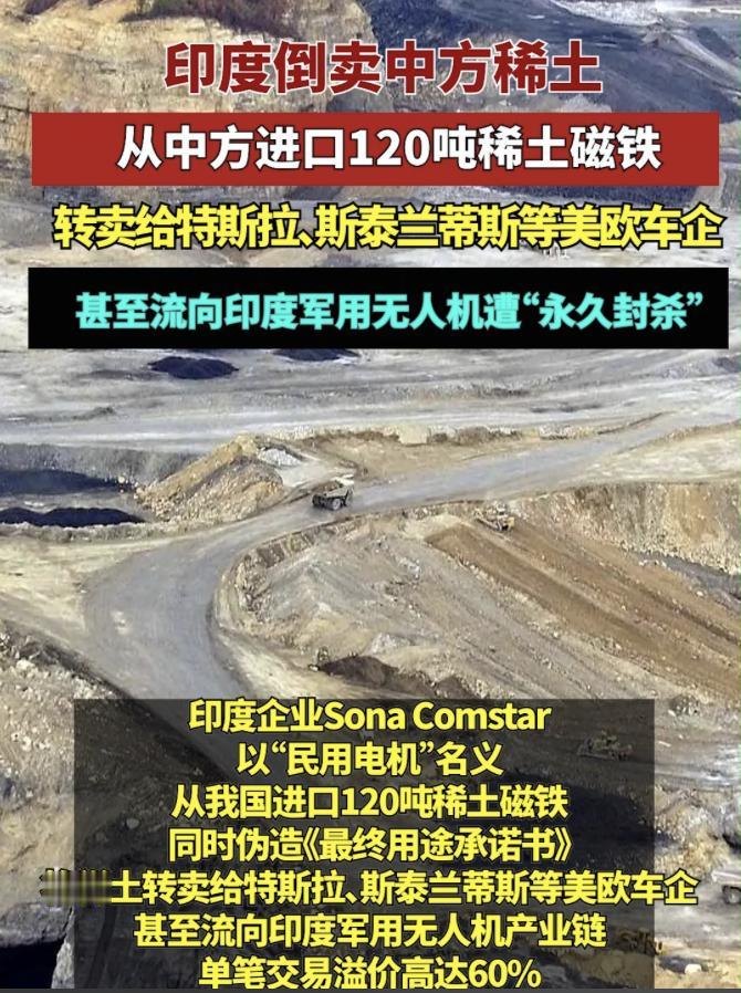 中国稀土管制的威力开始显现了! 10月16日,印度方面向中国保证:“今后不再将从中国进口的稀土材料出口到美国”,这才是识时务者为俊杰,想要得到稀土,就必须按我们说的规矩办。 印度心里肯定是不情愿的,但是没办法,中国生产了全球近90%的重稀土永磁体,在稀土精炼领域更是处于几乎完全垄断地位,印度的电动汽车和风力发电等新兴产业都严重依赖中国的稀土材料,没有中国的稀土材料,那就只能停摆,所以印度只能低头服软。 但是我们也不能大意,要当心印度玩表面一套,背后一套的把戏,一定要严格限制供应量,可以对印度出口,但不能给多,要让印度自己都不够用的,这样他才不会转手给美国。 目前来说,稀土是我们的一个非常有效的杀手锏,所以一定要让它发挥最大的威力。想想美国在芯片领域对我们封锁,只卖给我们低端芯片,高端的直接卡死,连高端光刻机也都卡死。 我们在稀土领域也要用这种方法来卡他们,高端稀土直接卡死,技术更要卡死,连相关的提炼稀土的设备都要严格限制,不给他们任何一点机会。 不光是印度,对其他所有国家也都应该这么做,不允许把我们的稀土材料,以及含稀土材料的元件出口美国,否则一旦发现,直接断供。