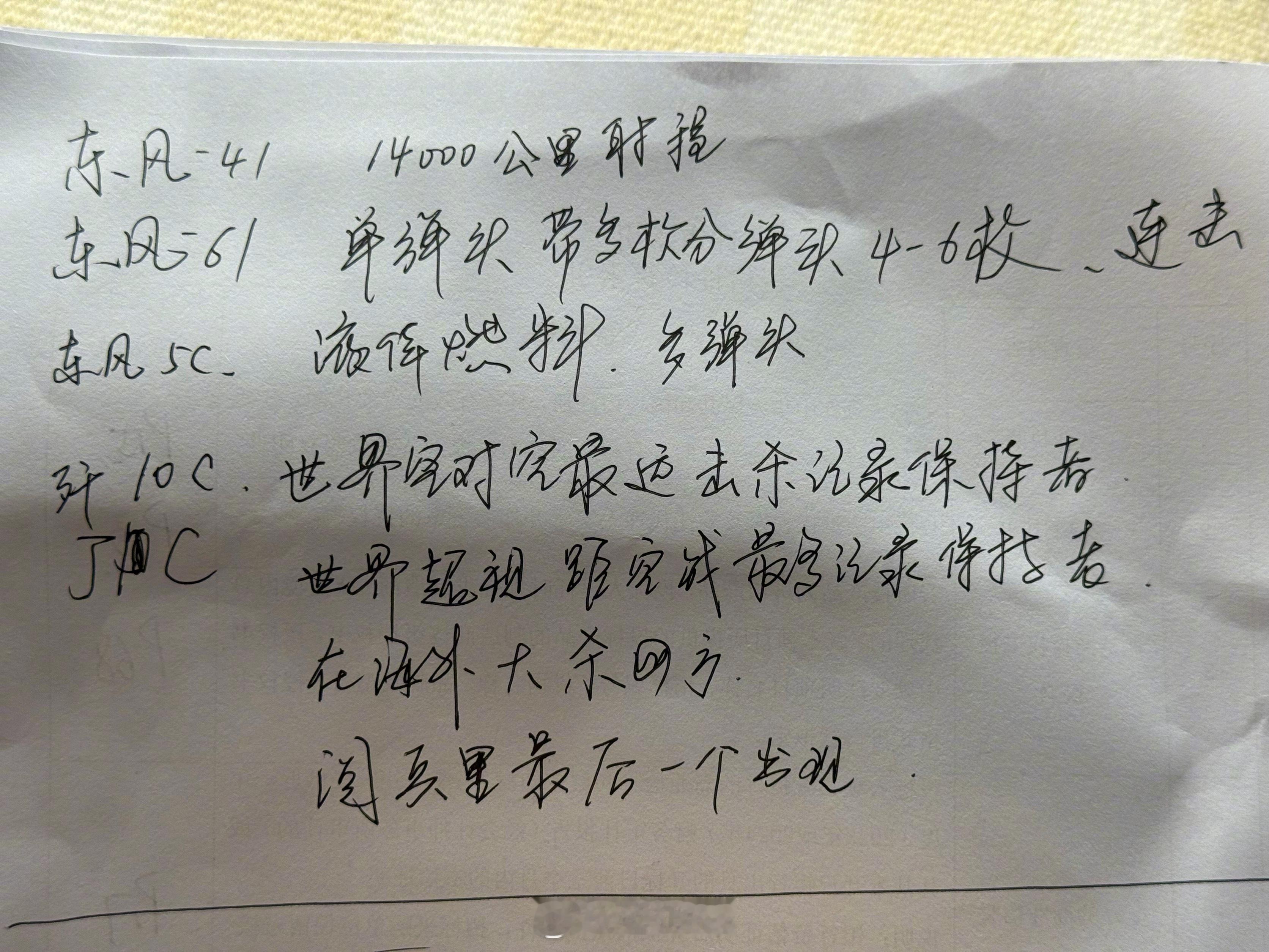 我老婆现场听讲解航空展后,好像对军事产生了挺大的兴趣,今天我意外发现了她的小笔记。感觉不是啥好事儿,我怕她以后在家里大杀四方,还好我也有霹雳15导弹[笑cry][笑cry][笑cry]