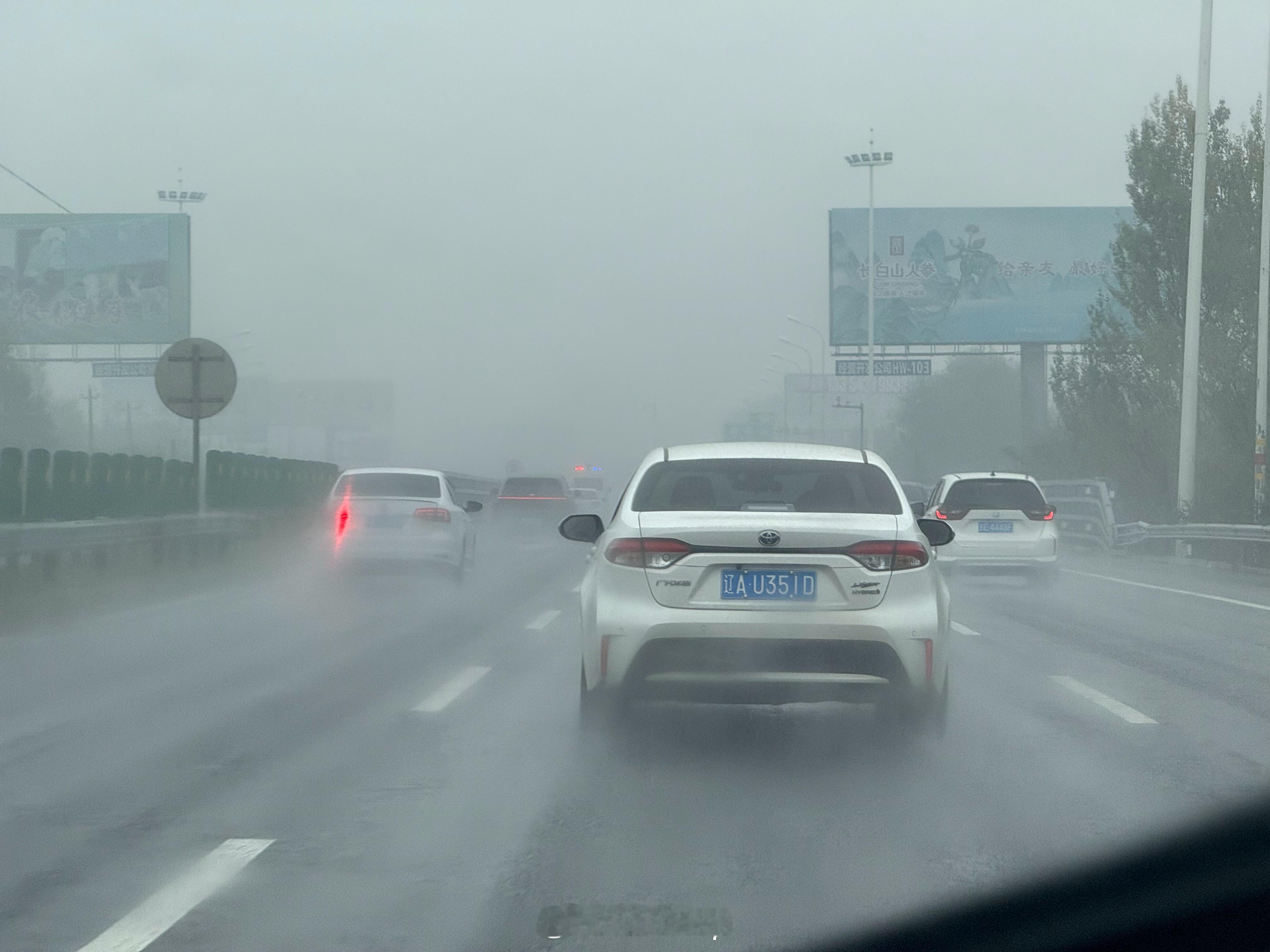 大雨大雾天气一定要打开后雾灯,主要是方便后车观察到你,雾灯的穿透力还是很强的,你