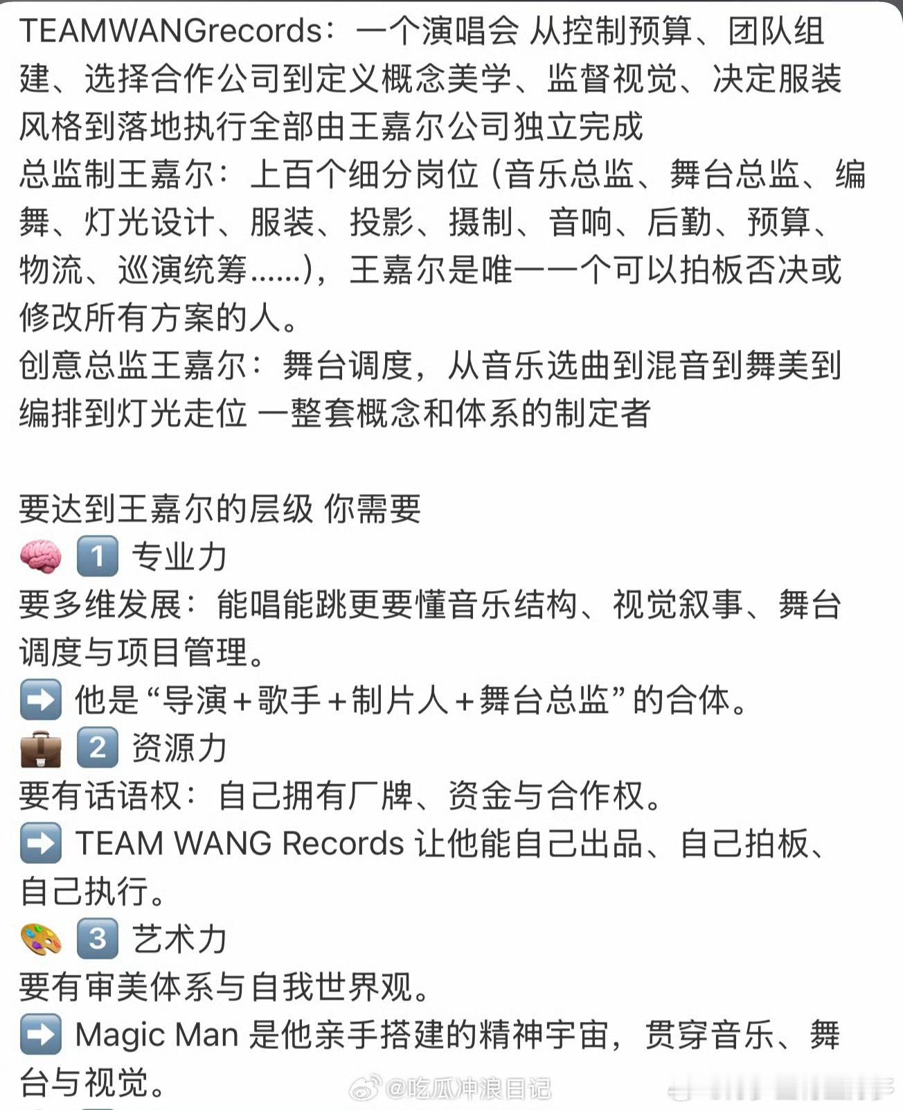 王嘉尔 把事业调成手动挡 从出品到创意总监,王嘉尔一手包办演唱会全流程!舞美惊艳全场,用实力兑现“做梦想领导者”的承诺,人脉与拼劲让事业开得又稳又出彩。