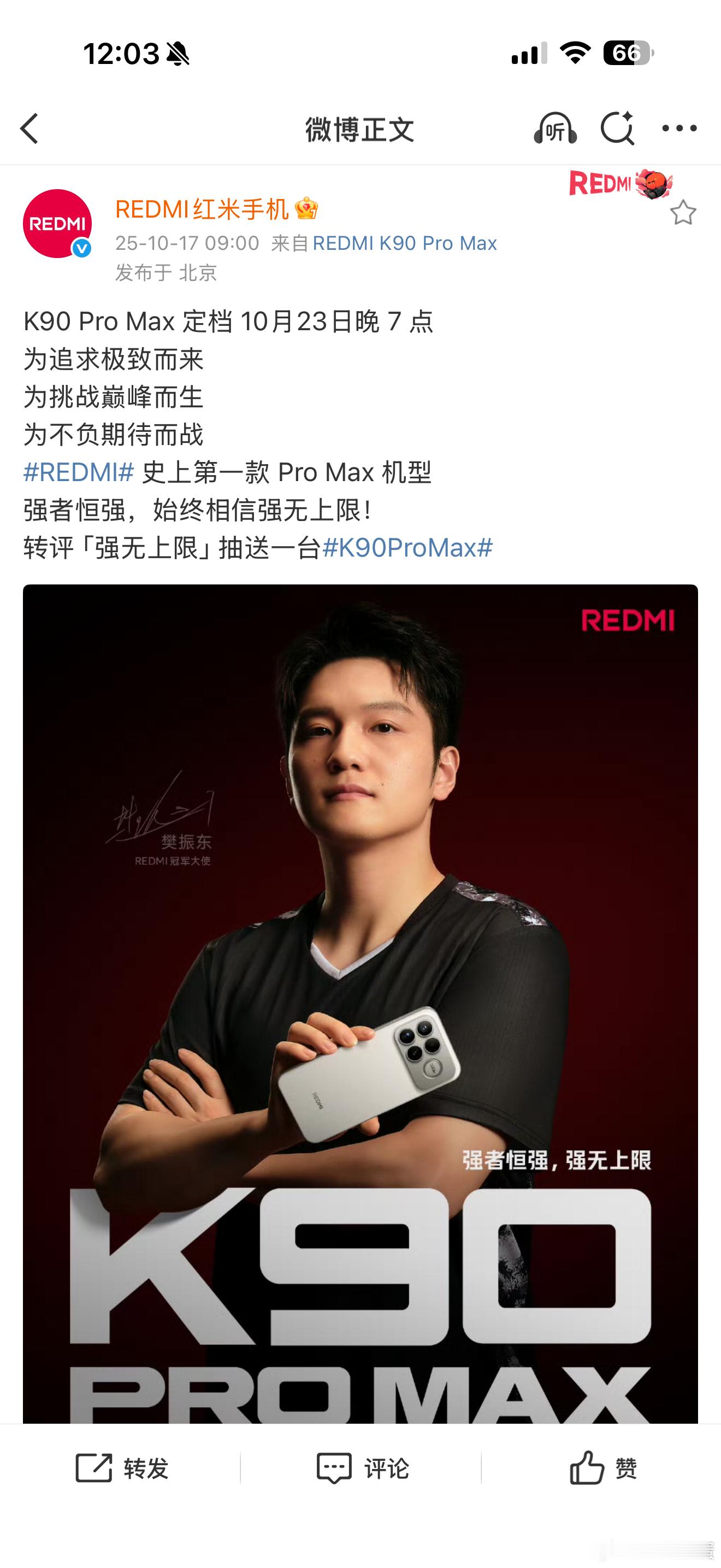 10月23日晚7点新品发布会即将开启,这款REDMI史上首款Pro Max机型,一起和狗蛋共鉴旗舰新高度~