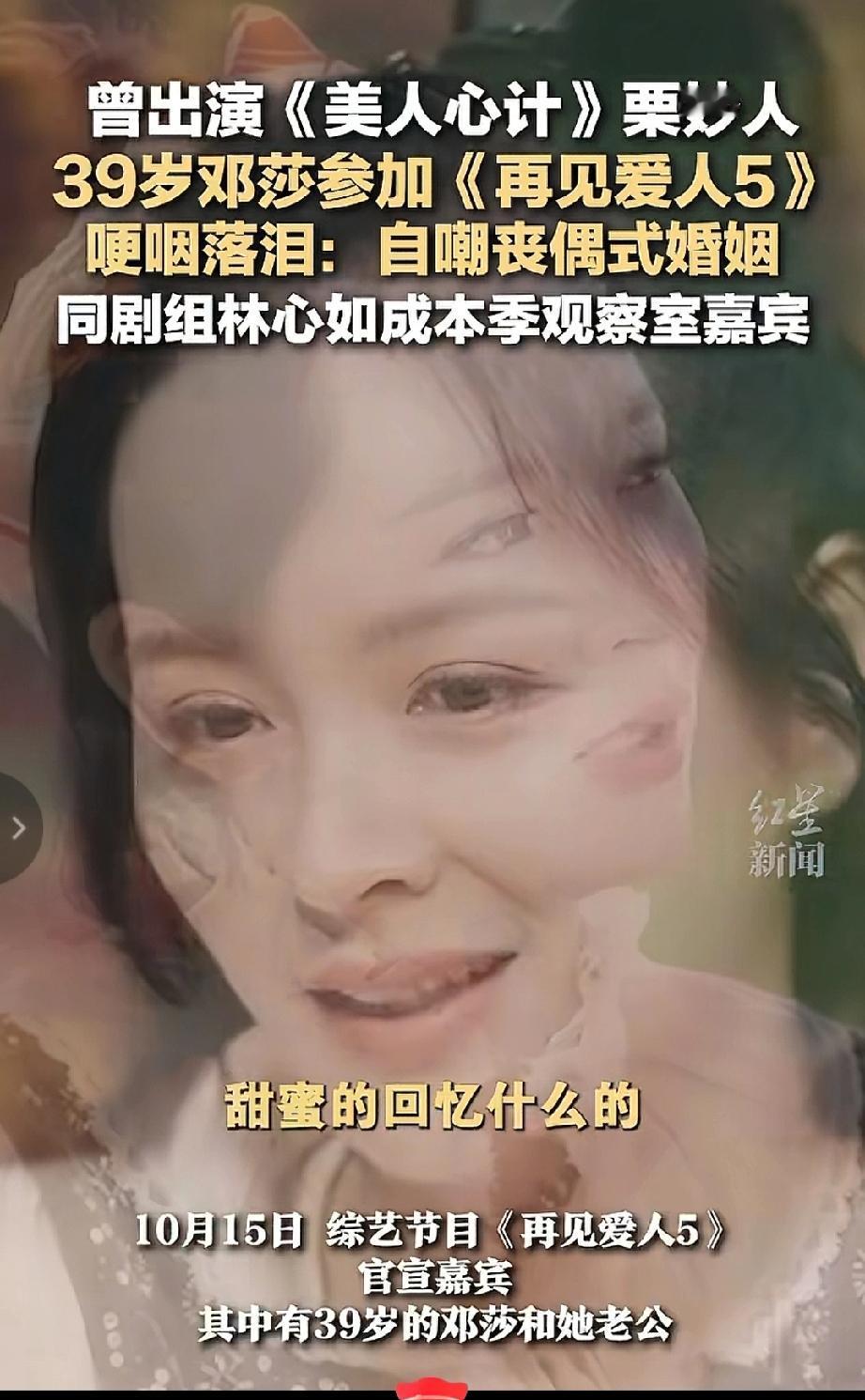 《再见爱人5》爆猛料!《美人心计》“婆媳”重逢,邓莎哭诉13年婚姻:丈夫常年分住,我像守活寡。 谁能想到,《再见爱人5》最戳心的片段,竟然藏着《美人心计》的“跨剧重逢”!39岁邓莎带着13年婚姻困境上节目,一开口就红了眼,而坐在观察室里的“婆婆”林心如,每句话都像在给这段破碎关系递“清醒剂”,刚播两期就把观众看哭了。 节目里邓莎的爆料,简直颠覆了大家对明星婚姻的想象。她直言和丈夫过着“丧偶式生活”:丈夫路行因为“怕狗吵”,常年住在离公司近的另一套房子,一家三口连张像样的合照都凑不出来;想知道丈夫的情绪,得靠10岁儿子当“传声筒”;甚至丈夫曾直言“你最大的贡献是生了个儿子”,把婚姻里的冷漠摆得明明白白。 最扎心的是,邓莎哽咽着说“我明明什么都有,却觉得自己像个孤家寡人”,弹幕里全是“这说的不就是我吗”的共鸣。 而更巧的是,这季观察室嘉宾竟然是49岁的林心如——14年前在《美人心计》里,邓莎演的栗妙人是林心如(窦漪房)的“儿媳”,如今现实里成了“婚姻旁观者”。 林心如一开口就戳中要害,看到邓莎委屈的样子,她直言“感情里最怕的就是‘我不说,你不懂’,时间久了就真的走散了”,还大方分享自己和霍建华的相处细节:霍建华会主动减少工作陪女儿,两人吵架从不在孩子面前红脸,“婚姻不是搭伙过日子,是得两个人一起修修补补”。 这季节目把邓莎的婚姻困境拍得太真实了:夫妻俩明明能准确说出对方的喜好,却在“要不要送走狗”这种小事上吵到冷战;一起旅行时,丈夫全程玩手机,邓莎只能对着镜头强装笑脸;就连儿子都忍不住说“爸爸好像不太喜欢和我们待在一起”。 弹幕里有人心疼邓莎,也有人吐槽“这婚不如趁早离”,话题邓莎的婚姻像极了大多数人直接冲上热搜。 目前节目才播到第三期,邓莎和丈夫已经在旅途中爆发了两次大争吵,丈夫虽然嘴上说“想改变”,行动上却依旧敷衍。而林心如在观察室里的点评,每句都像给观众上课:“不要觉得结婚久了就可以偷懒,感情是会被消耗的”“女人不管什么时候,都不能丢了自己”。不少网友已经开始蹲后续,想知道这对夫妻到底能不能解开心结,毕竟谁也不想看到《美人心计》里的“俏美人”,在现实婚姻里受这么多委屈。 如果你也追这季《再见爱人5》,或者对邓莎的婚姻故事有感触,不妨蹲守每周三到周五的更新——毕竟能看到《美人心计》“婆媳”同框聊婚姻,还能get到这么多现实干货,这样的综艺可不多见! 你最推荐的一个剧追剧