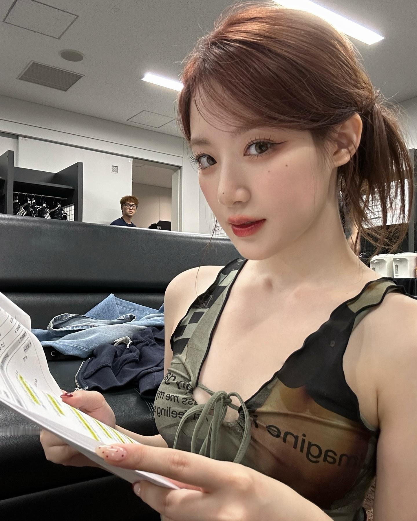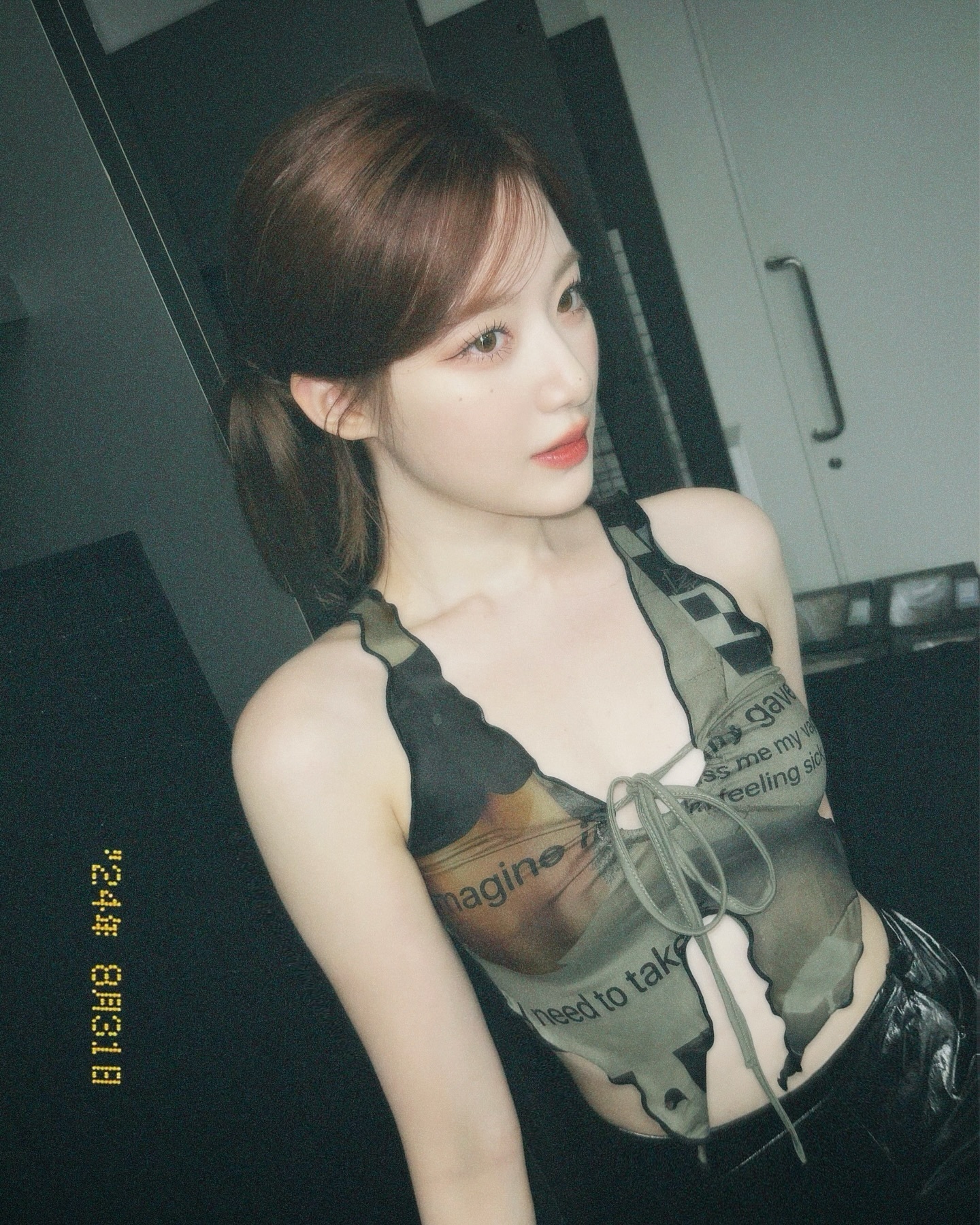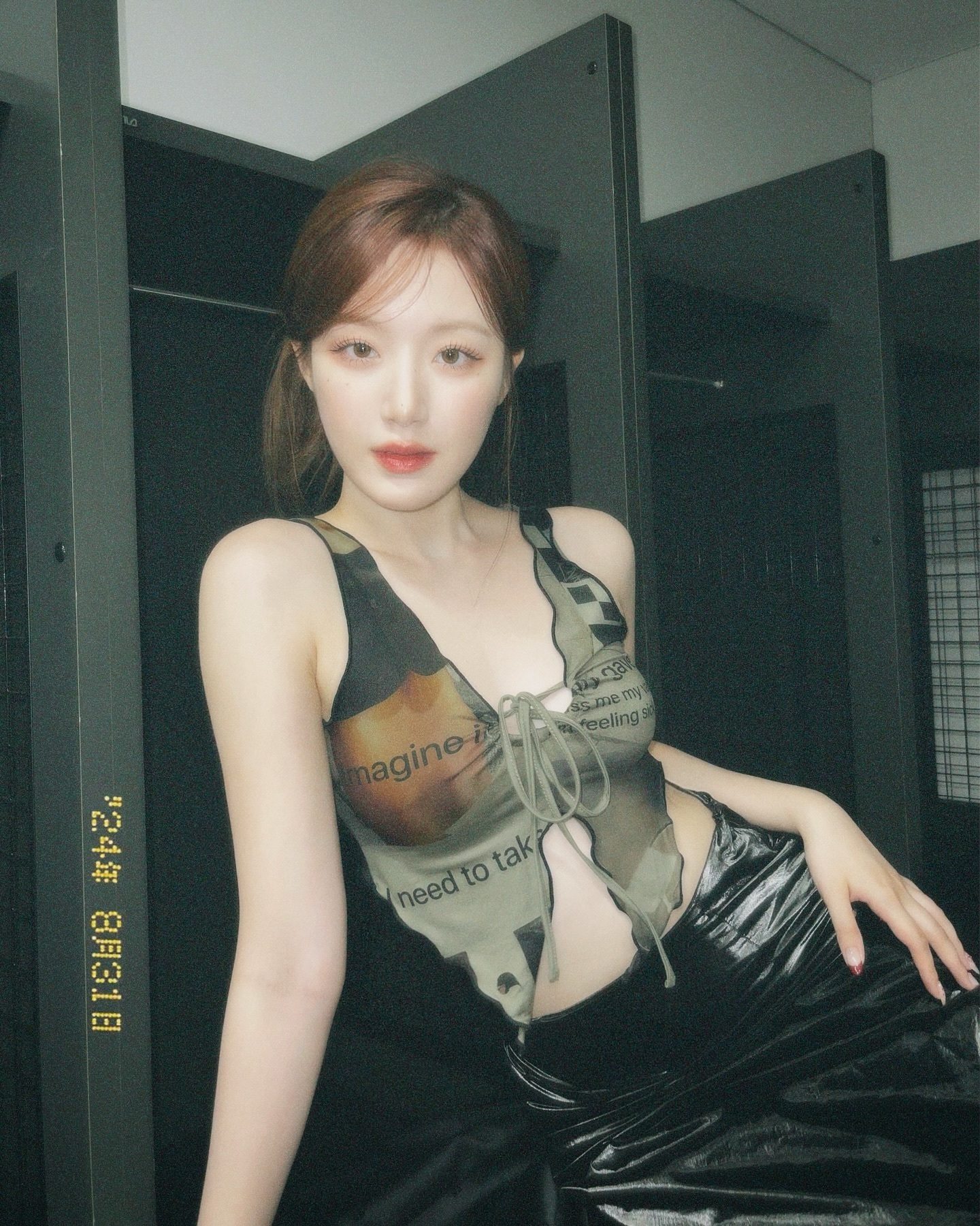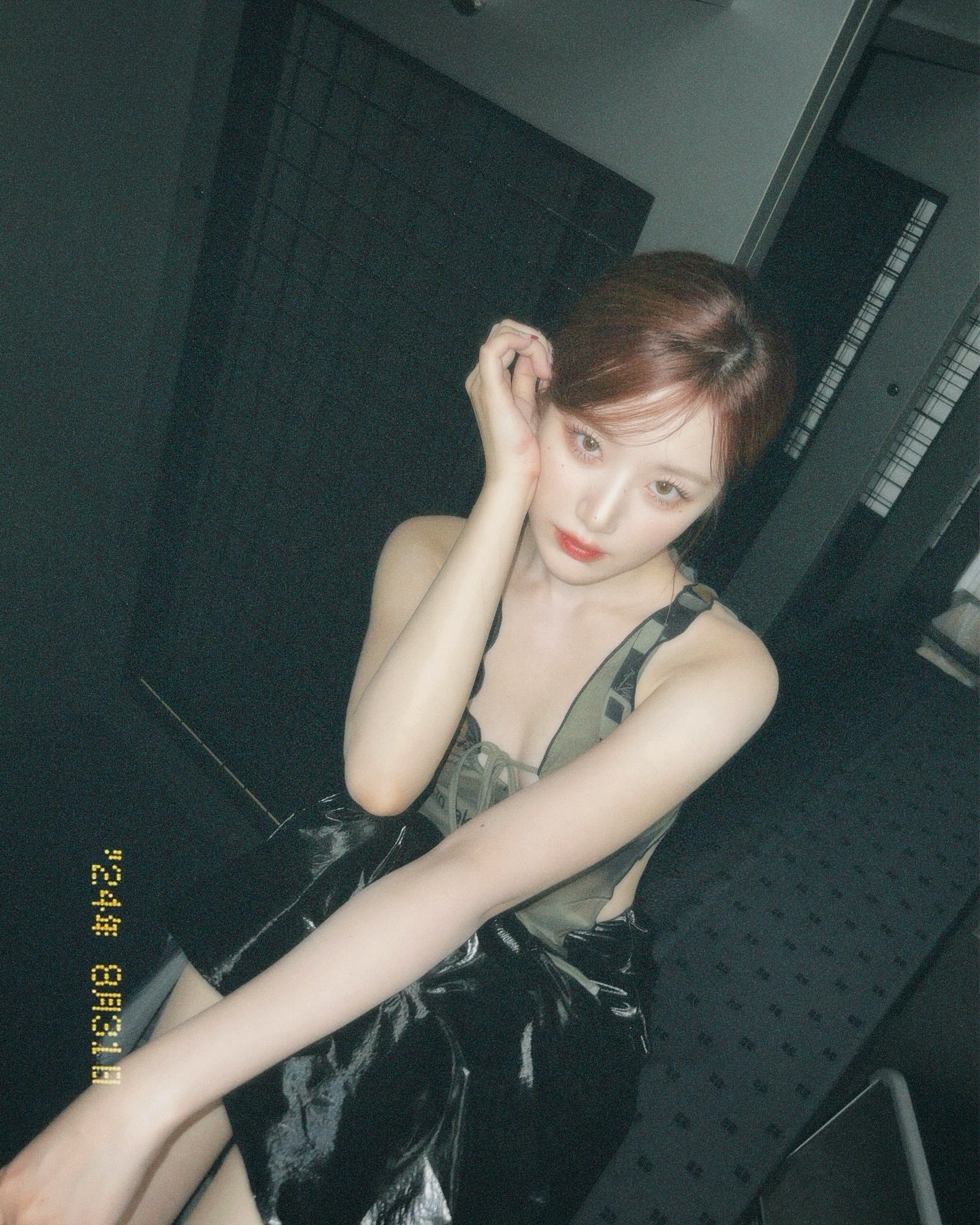 叶舒华最新穿搭头像,吊带皮裙,又酷又美
