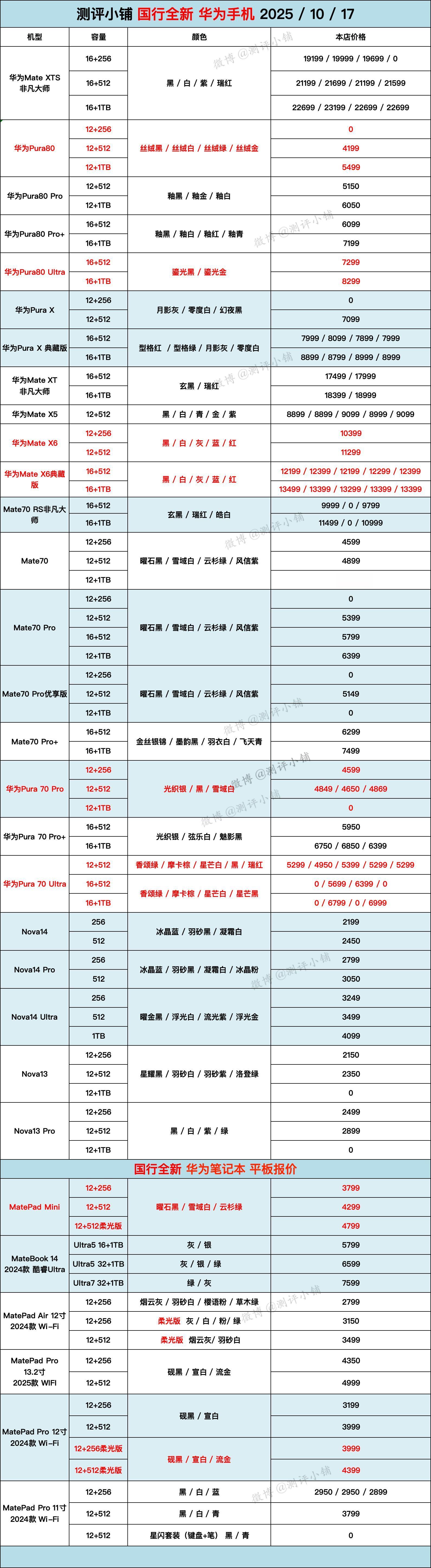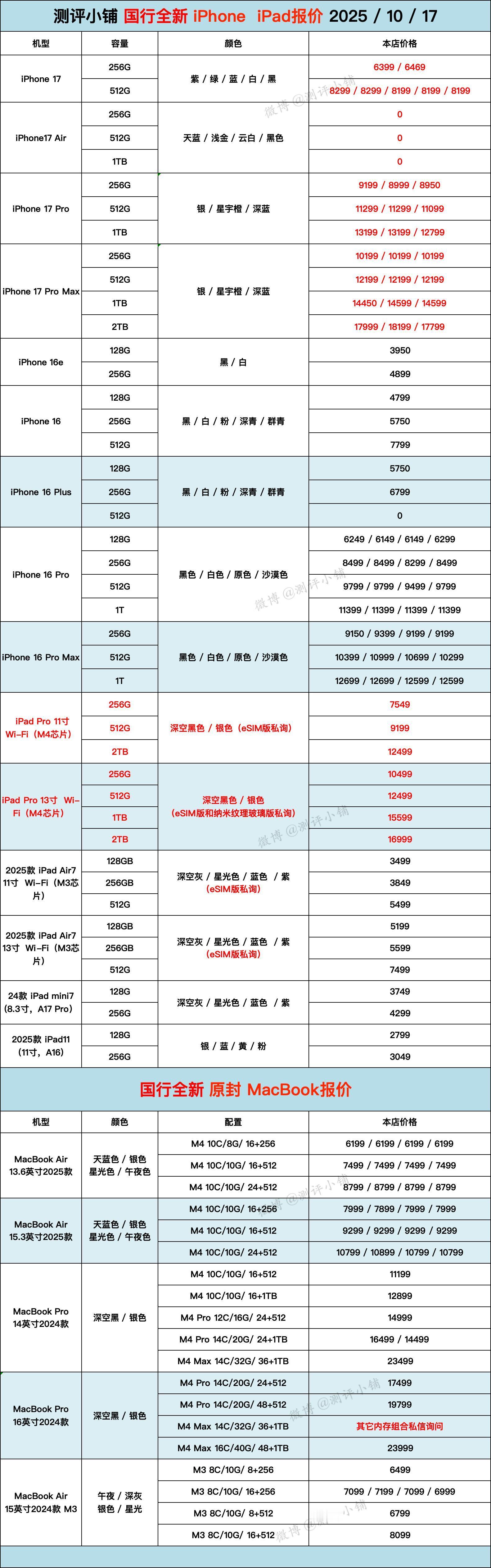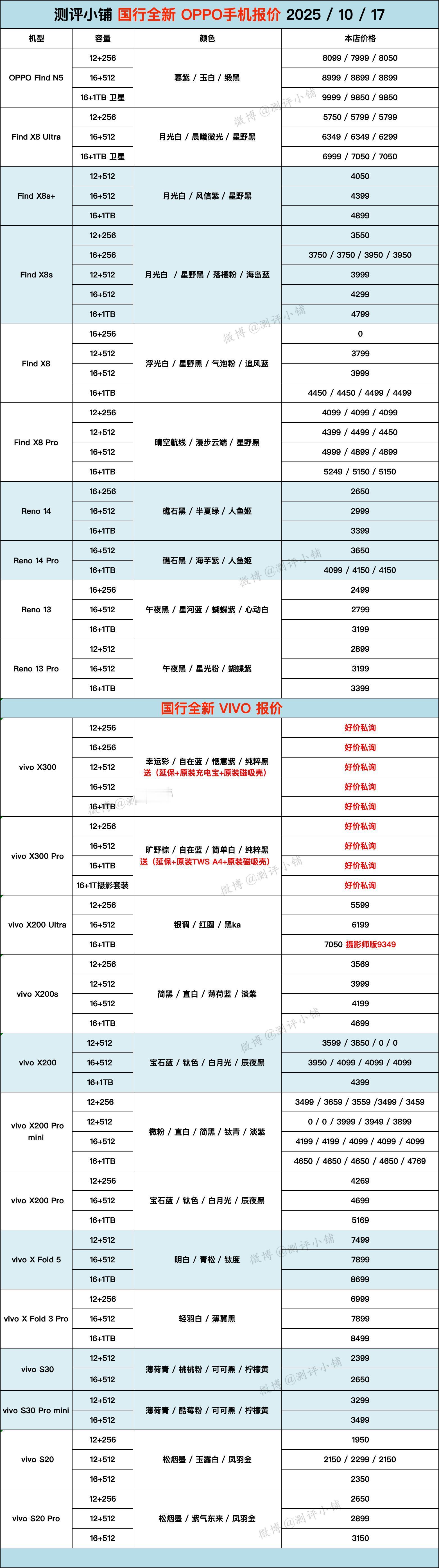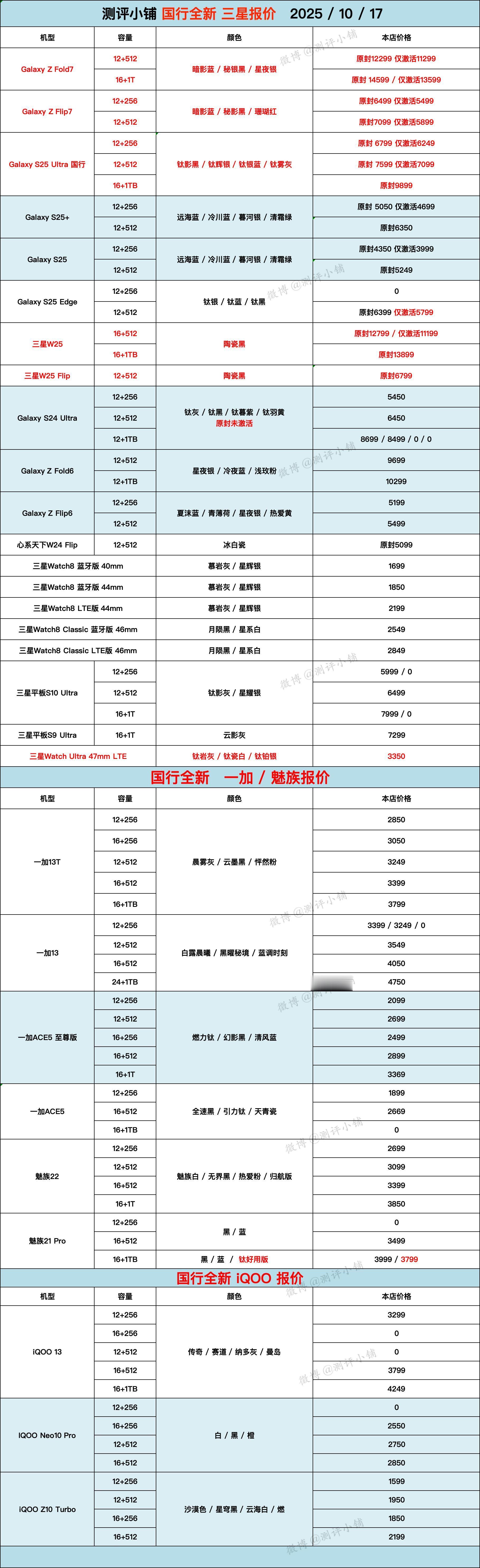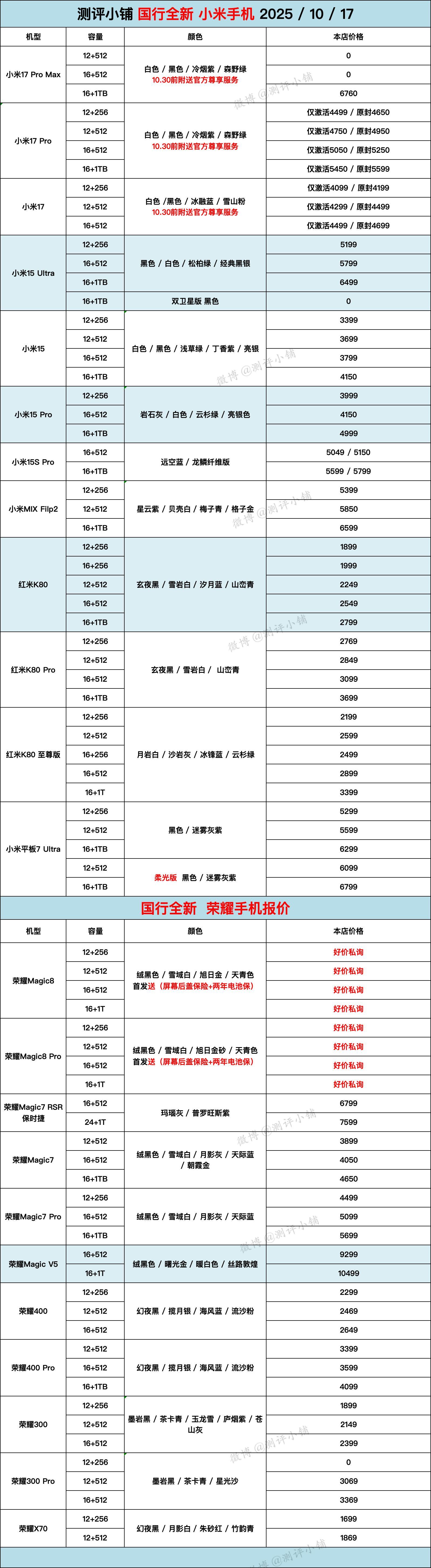 10-17国行全新机。vivo X300系列发售!iPhone系列,华为Mate70、Pura80系列,小米17 ProMax,小米15系列,三星S25全系列,一加13、一加Ace5系列,vivo X200 Ultra等更新。