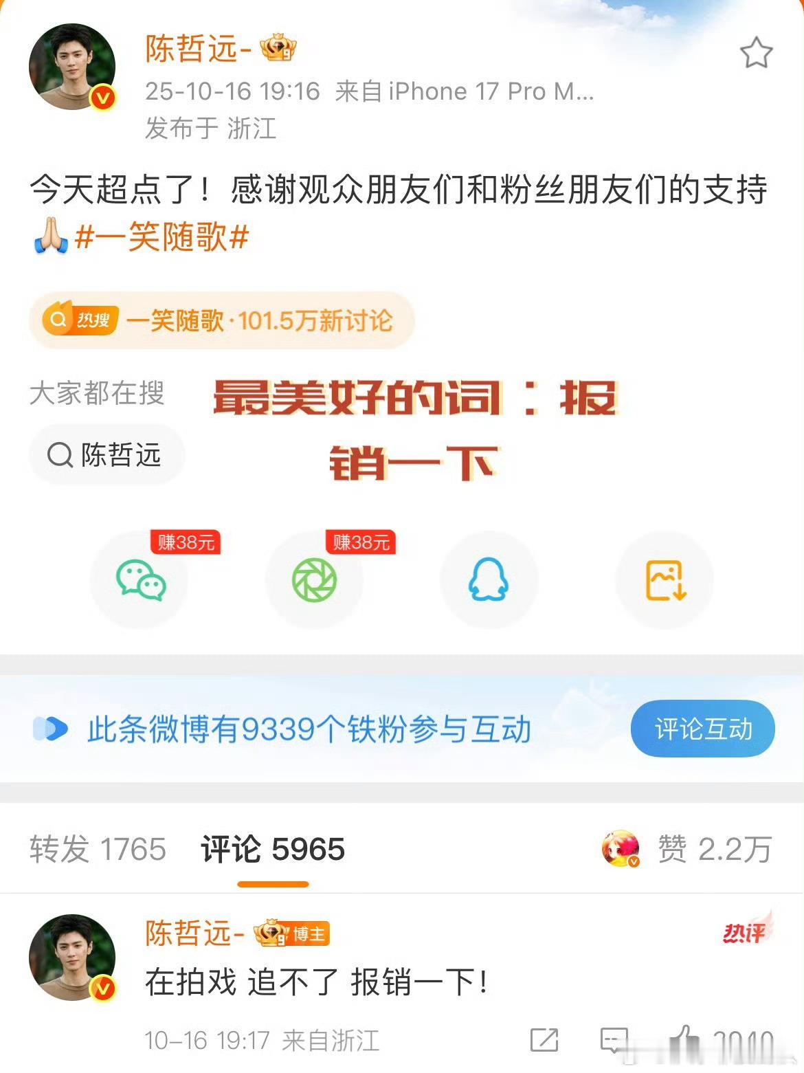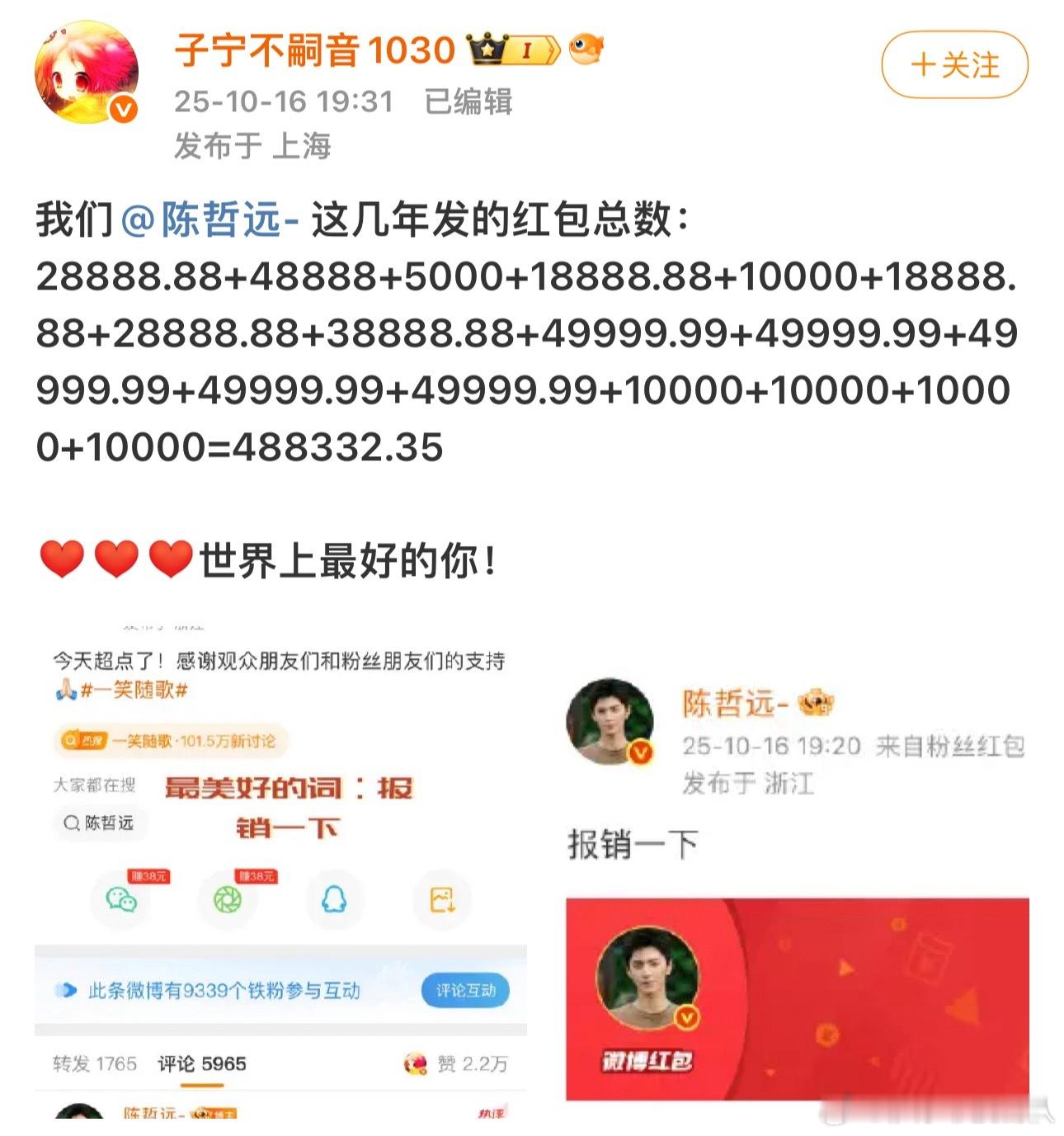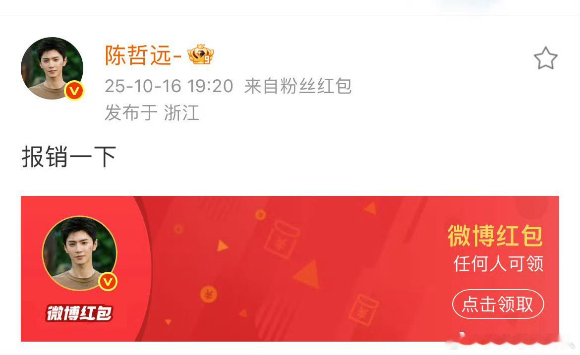 陈哲远内娱散财童子 发了快50万红包,还有线下也会发红包,好大气!