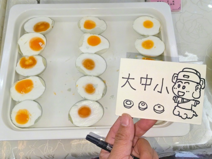 早上好!取餐时发现食堂的咸蛋大小各异?闲的没事给分类一下(现在感觉顺眼多了🥚?