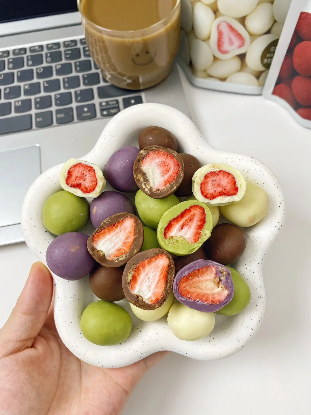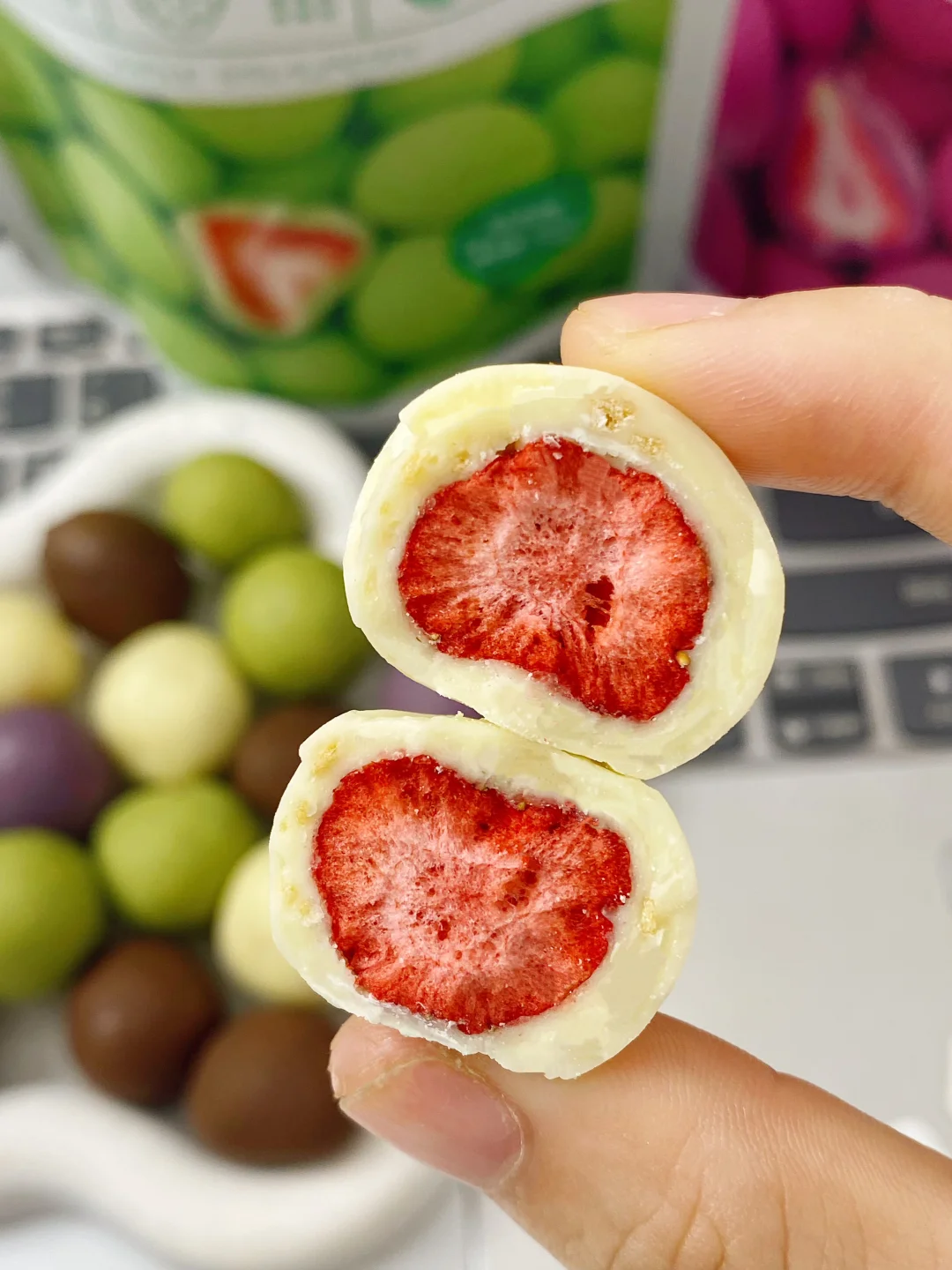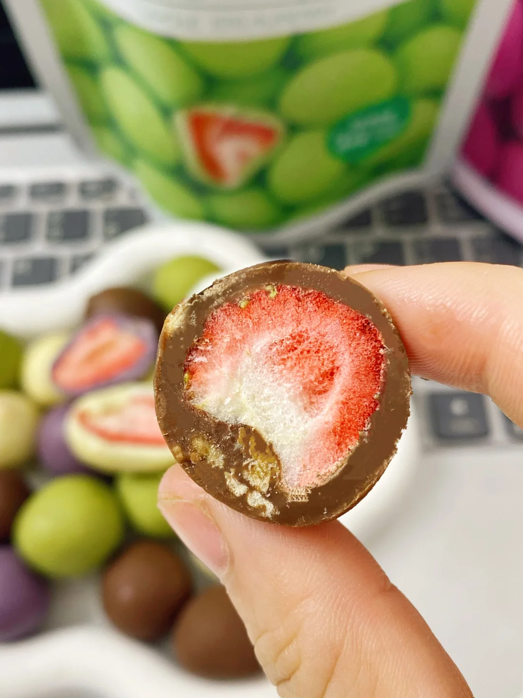 外面是厚厚一层丝滑巧克力🍫里面居然是整颗冻干草莓!