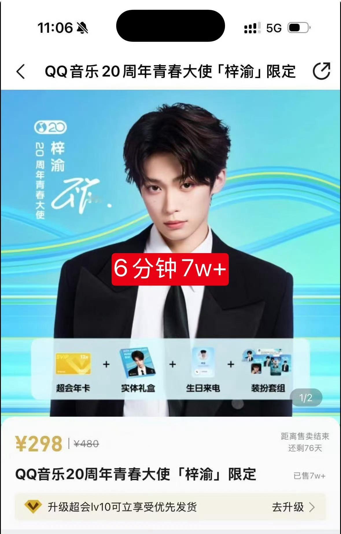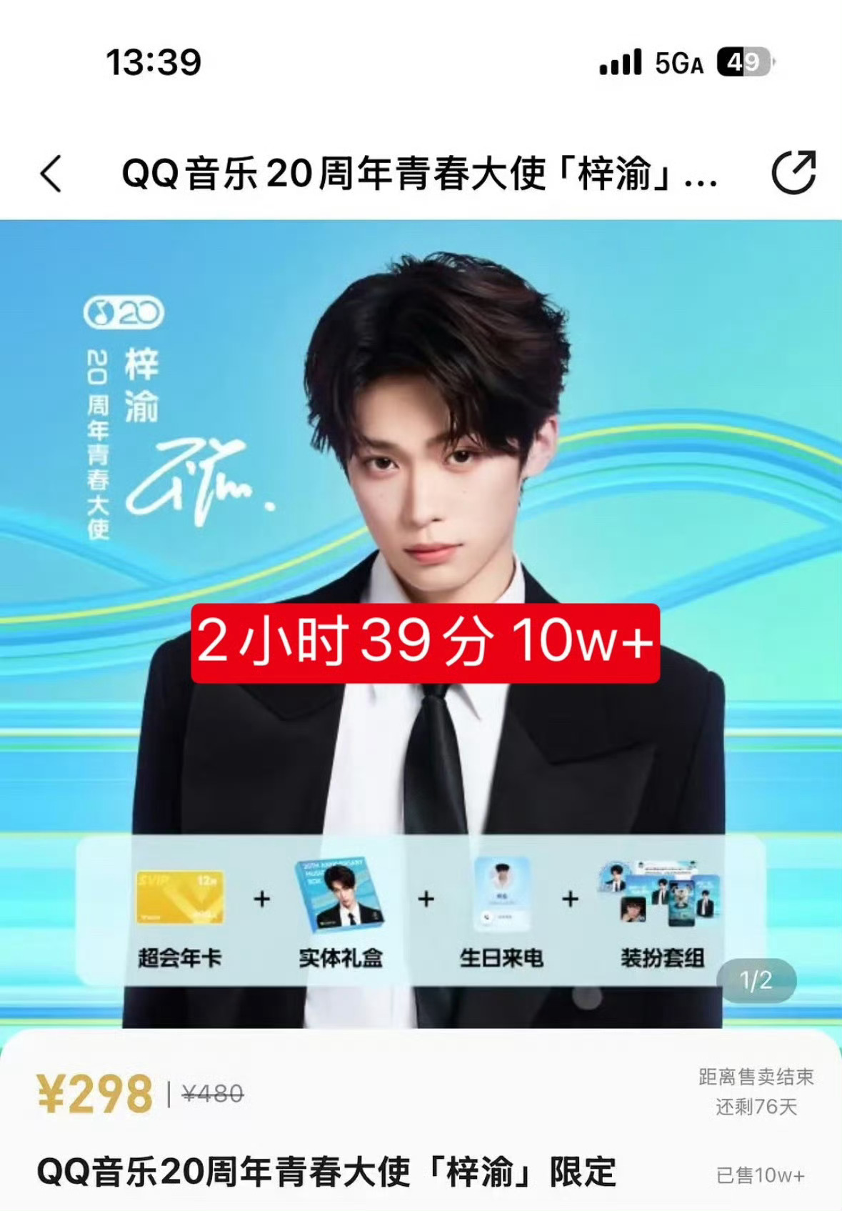 梓渝第二个swQQ音乐秒切3000万+,破10万仅用2小时39分钟,就是很多人爱听梓渝新歌啊,而且海报审美也很好[送花花]