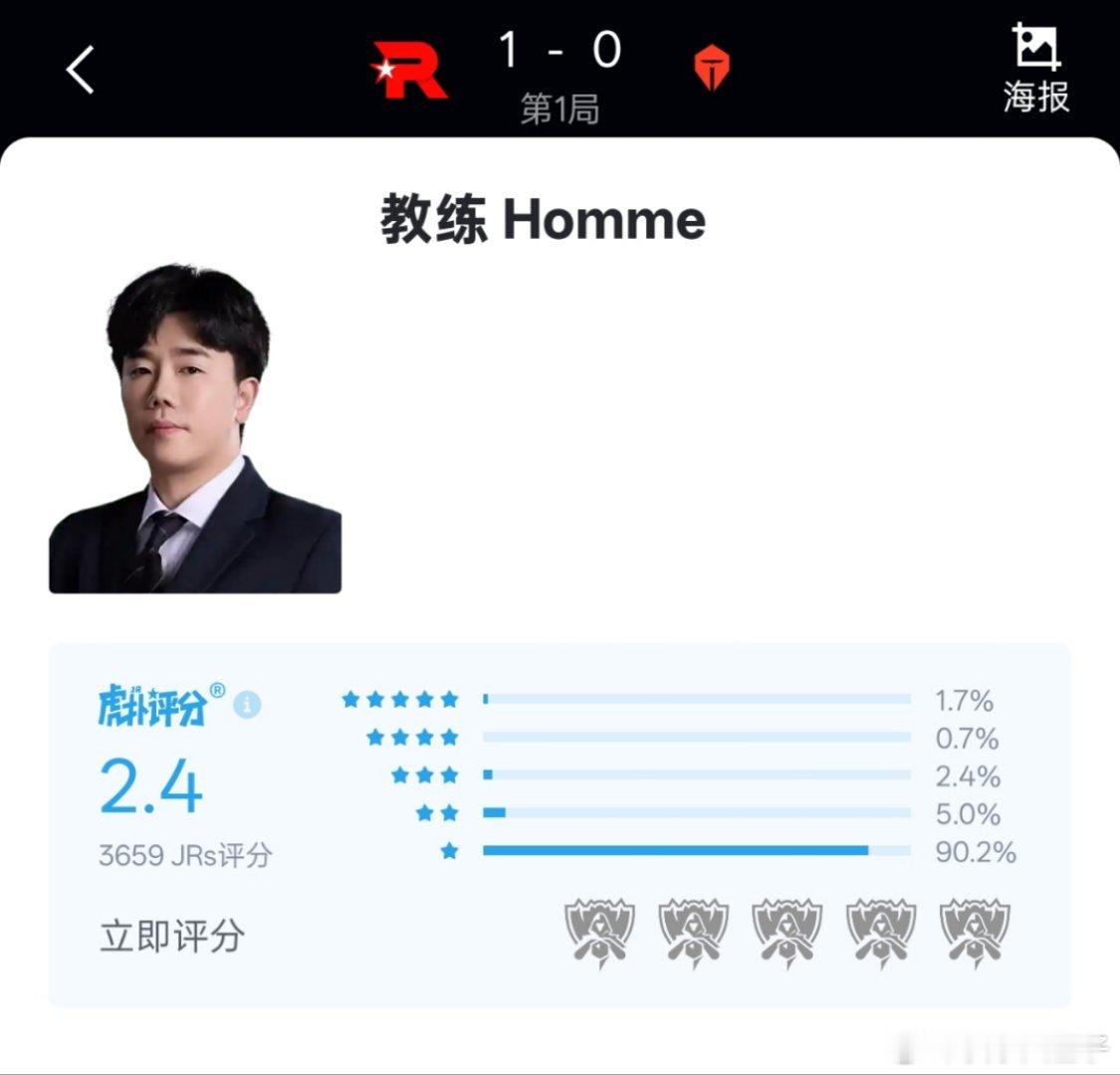 TES别着急 Homme第一局被打2.4分,九连败的皇子后面真别选了。[祈祷]tes对战kt英雄联盟s15TOP_ESPORTS[超话]
